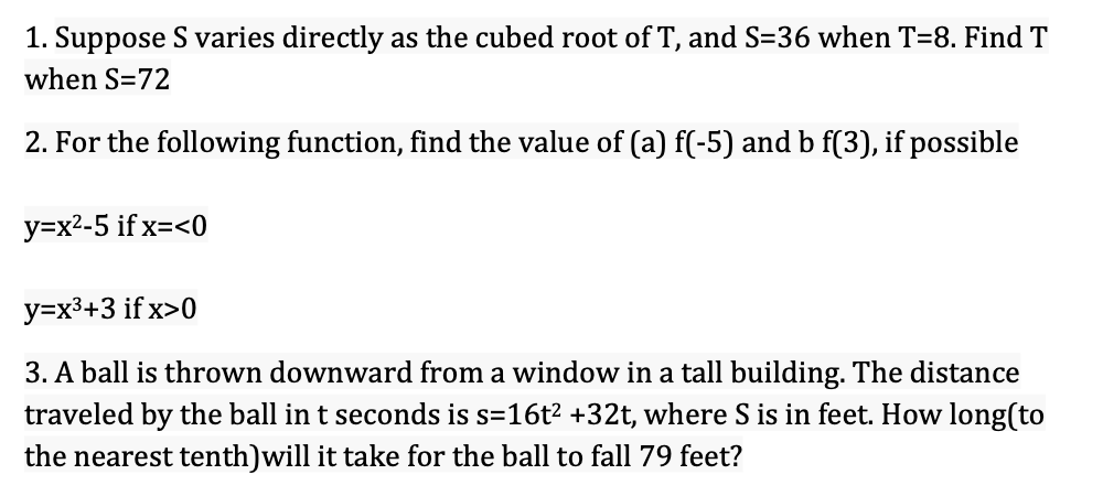 1. Suppose S varies directly as the cubed root of T, and S=36 when...