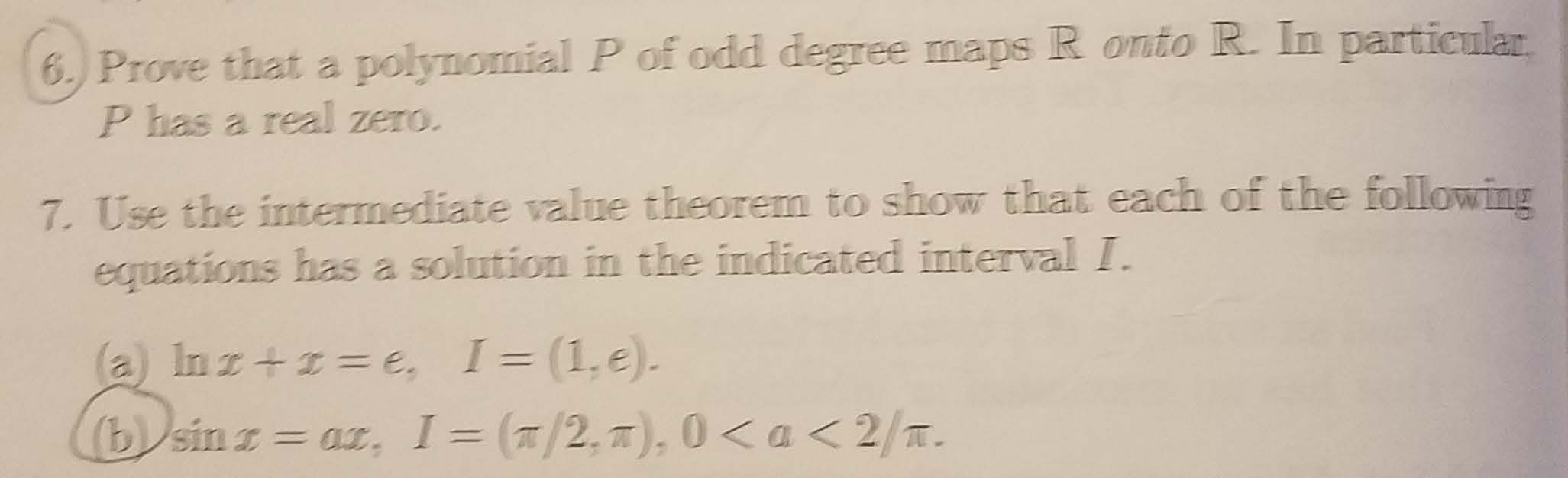 6. Prove that a polynomial P of odd degree maps R onto R. In parti...
