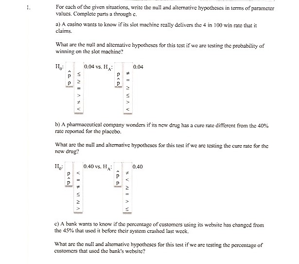1. For each of the given situations, write the null and alternativ...