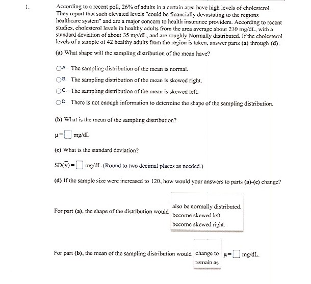 1. According to a recent poll, 26% of adults in a certain area hav...