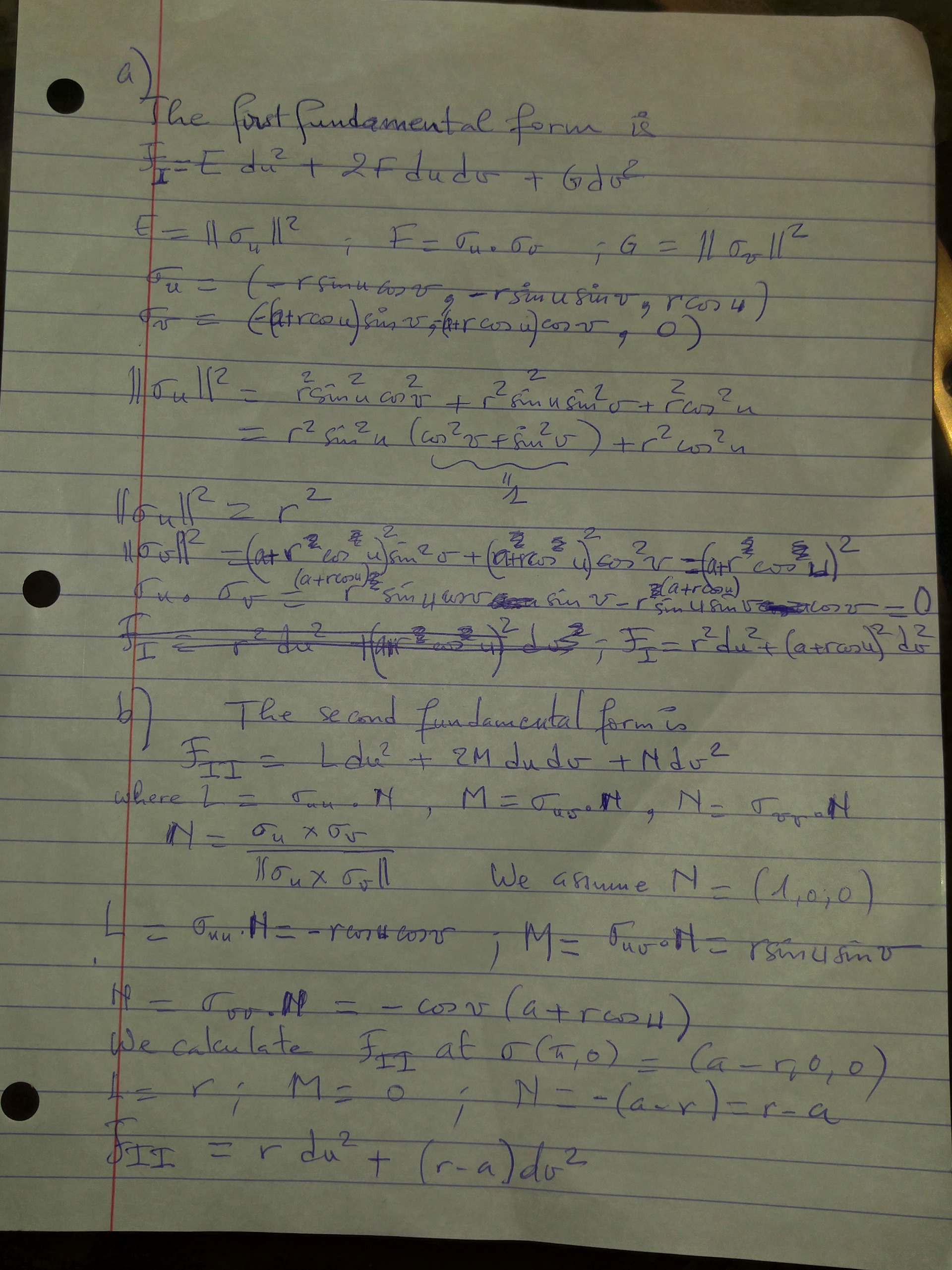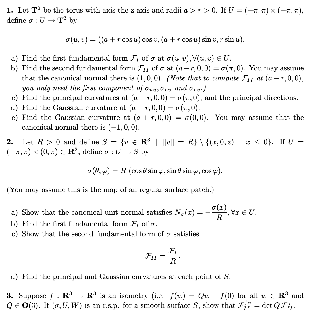 1. Let T2 be the torus with axis the z-axis and radii a >r>0....