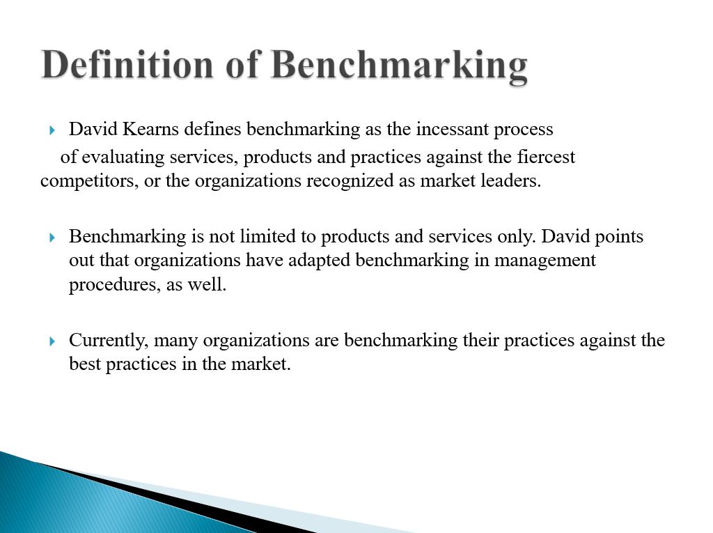 Summarize the definition of Benchmarking into 10 slides of PowerPoi...