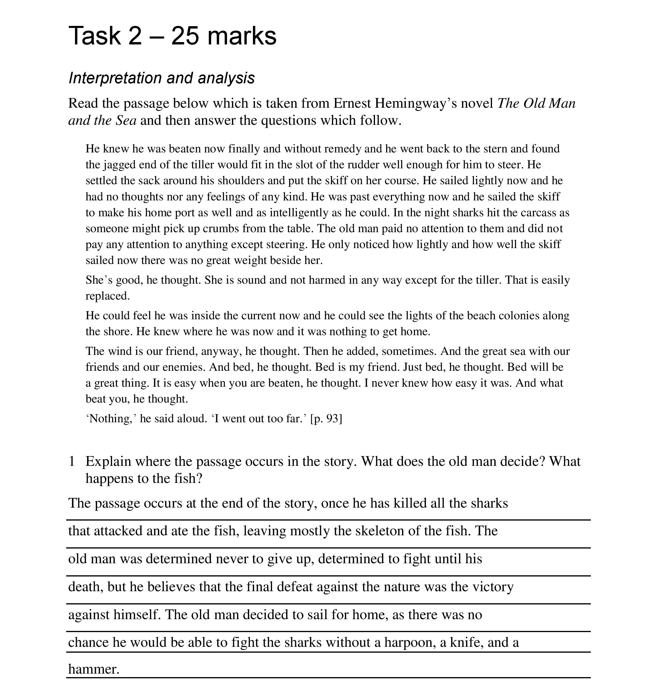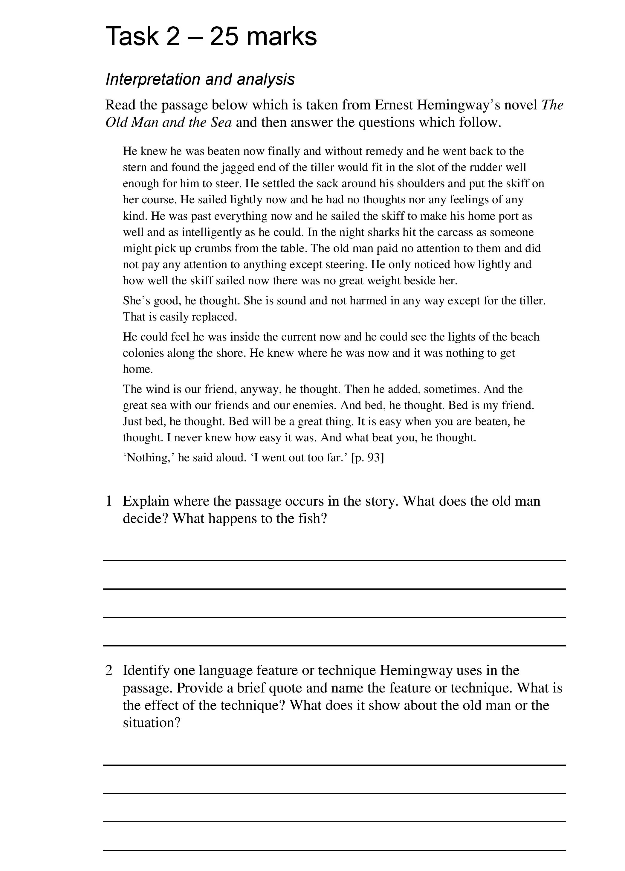 Task 2 - 25 marks Interpretation and analysis Read the passage be...