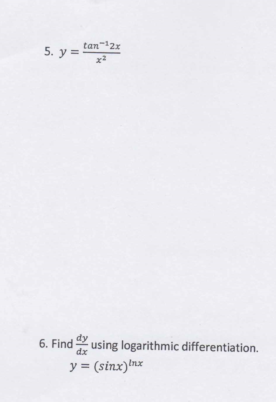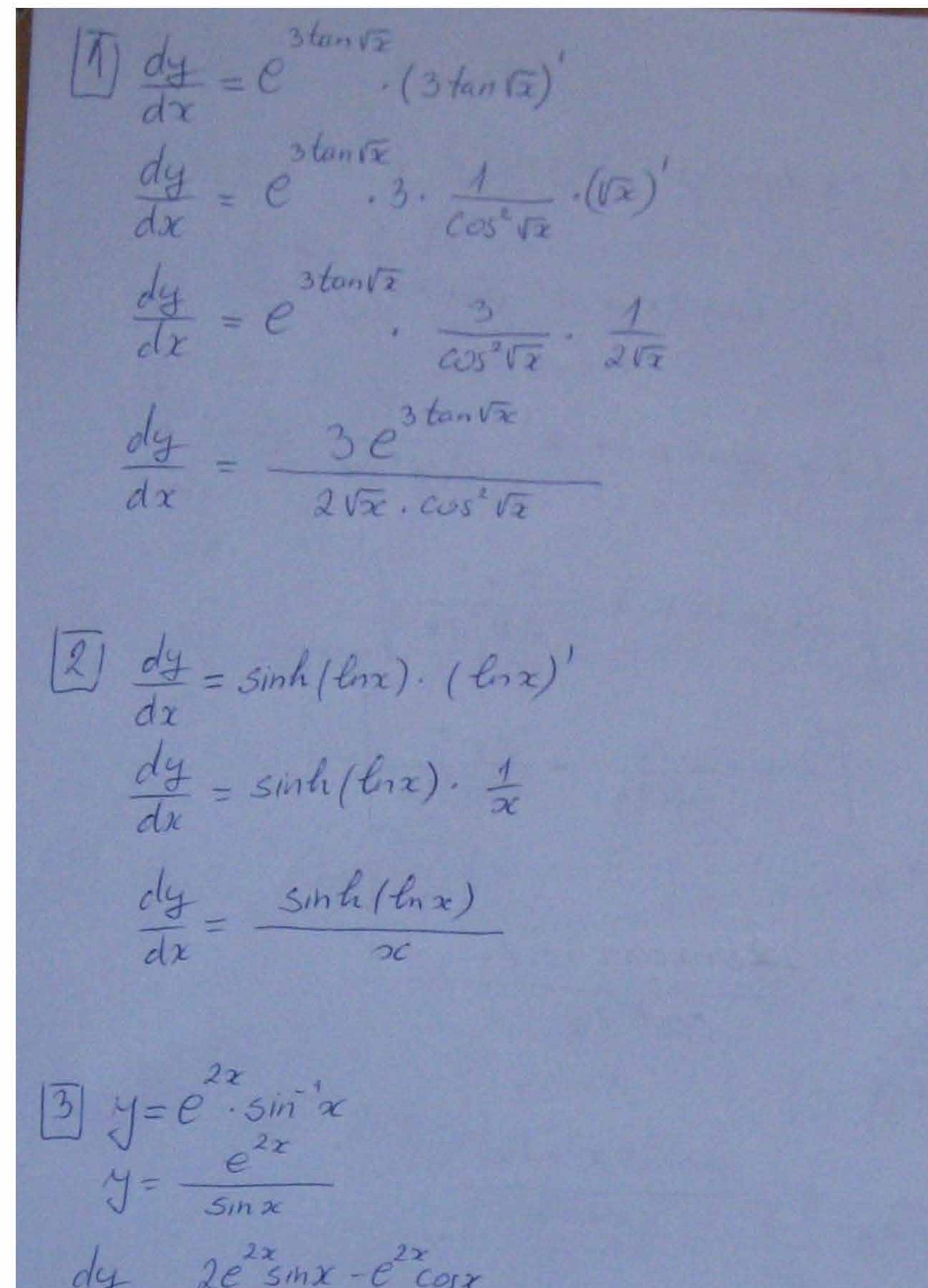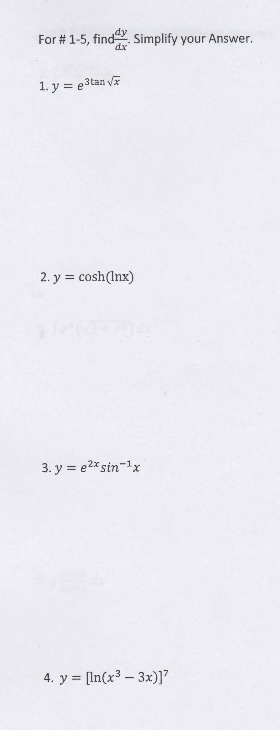 For # 1-5, find dy Simplify your Answer. 1. y = 2. y = cosh (Inx)...