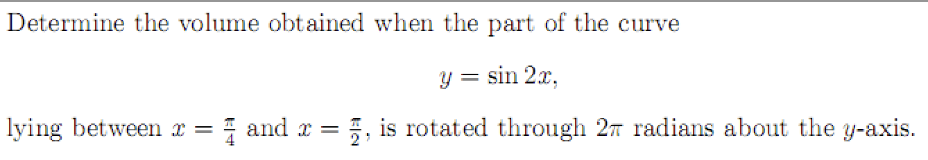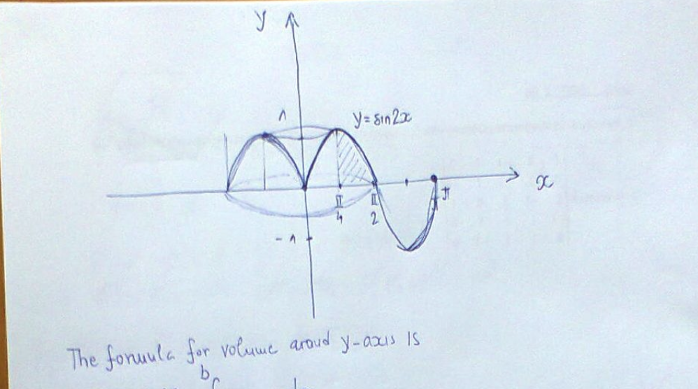 Determine the volume obtained when the part of the curve Y = sin 2...