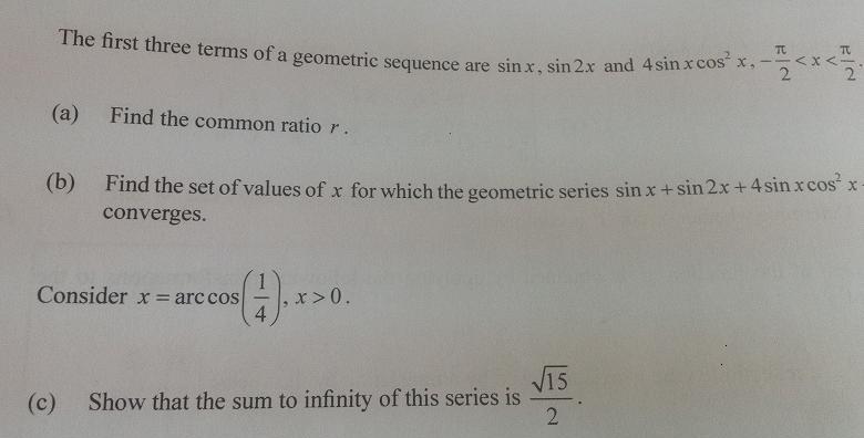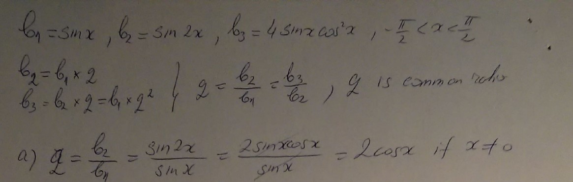 The first three terms of a geometric sequence are sin x. sin 2x and...