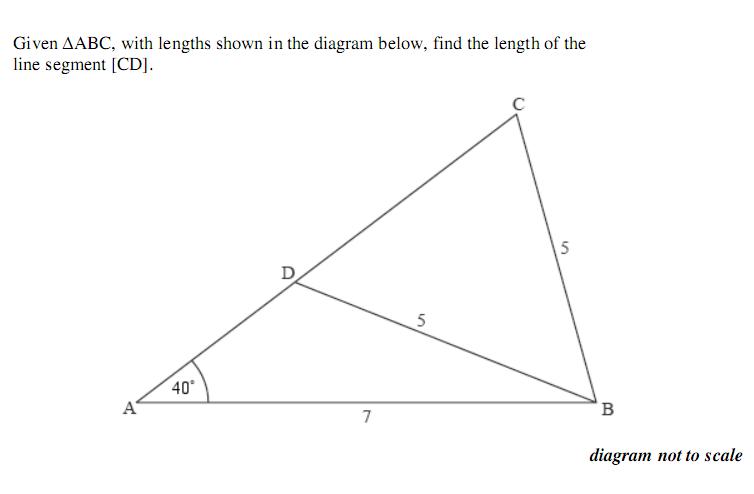 Given ^ABC, with lengths shown in the diagram below, find the lengt...