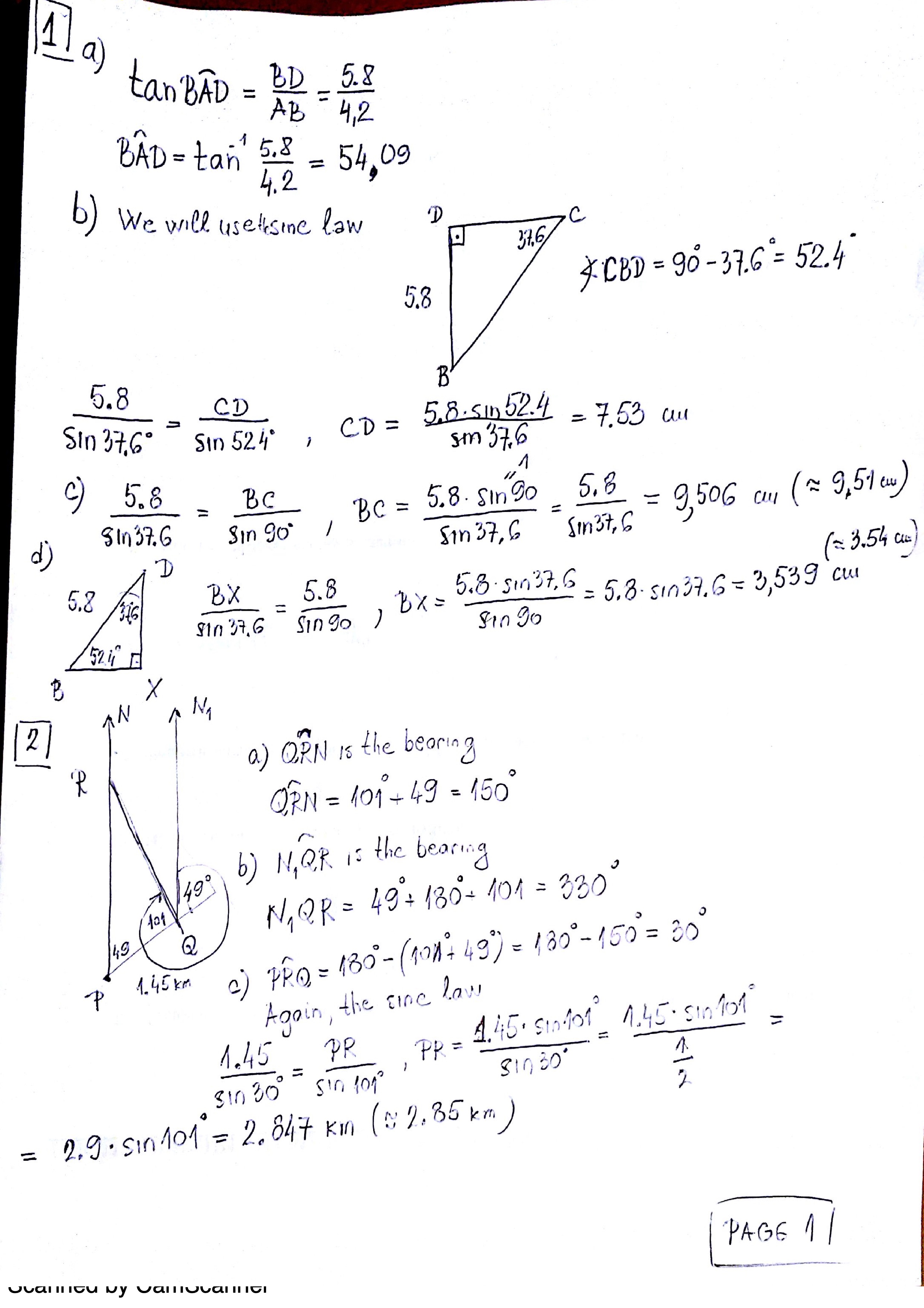 1. In the diagram, ABD = BBC = 90°, AB = 4. Three points A. B a...