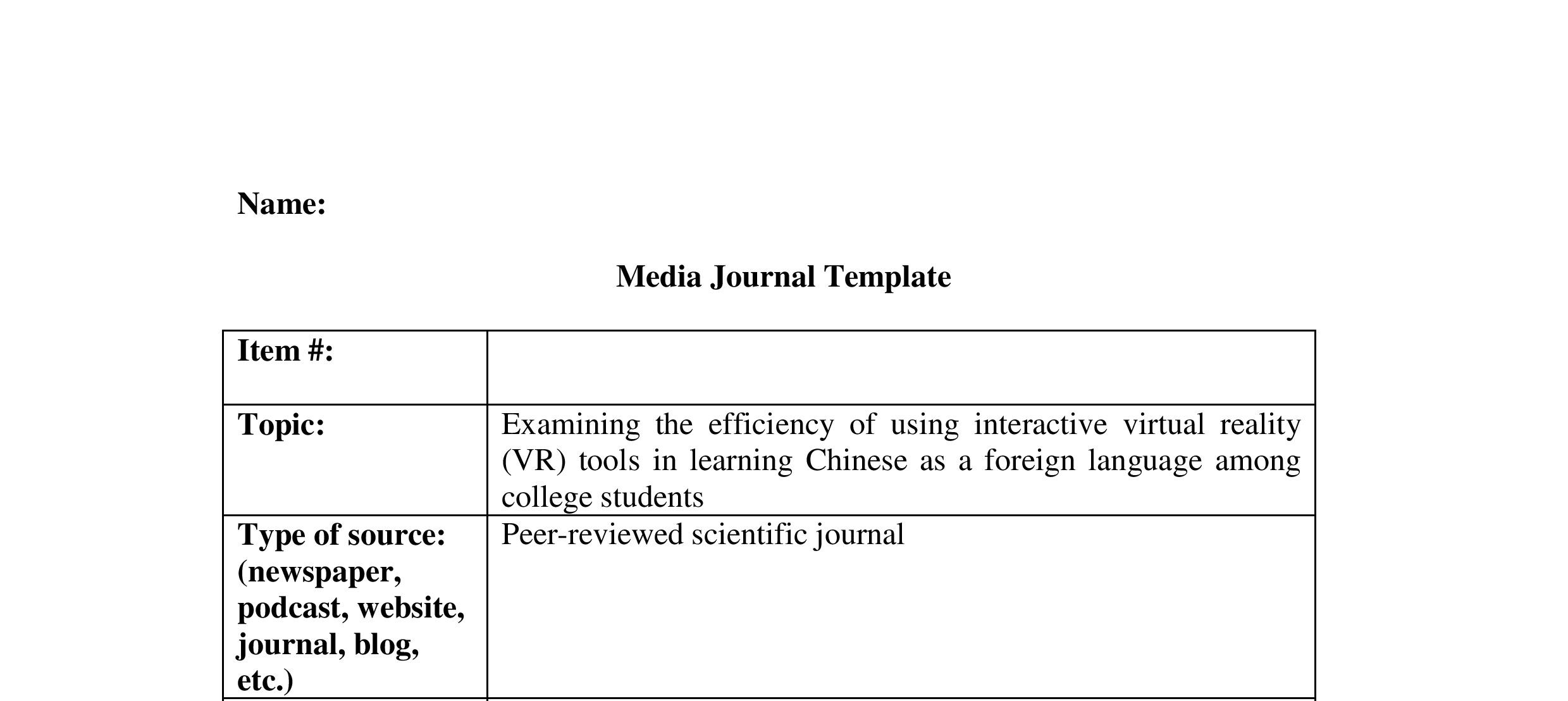 Media Journal Assignment Throughout the semester students will ...