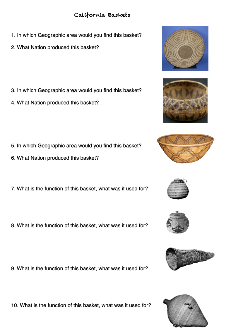California Baskels 1. In which Geographic area would you find this...