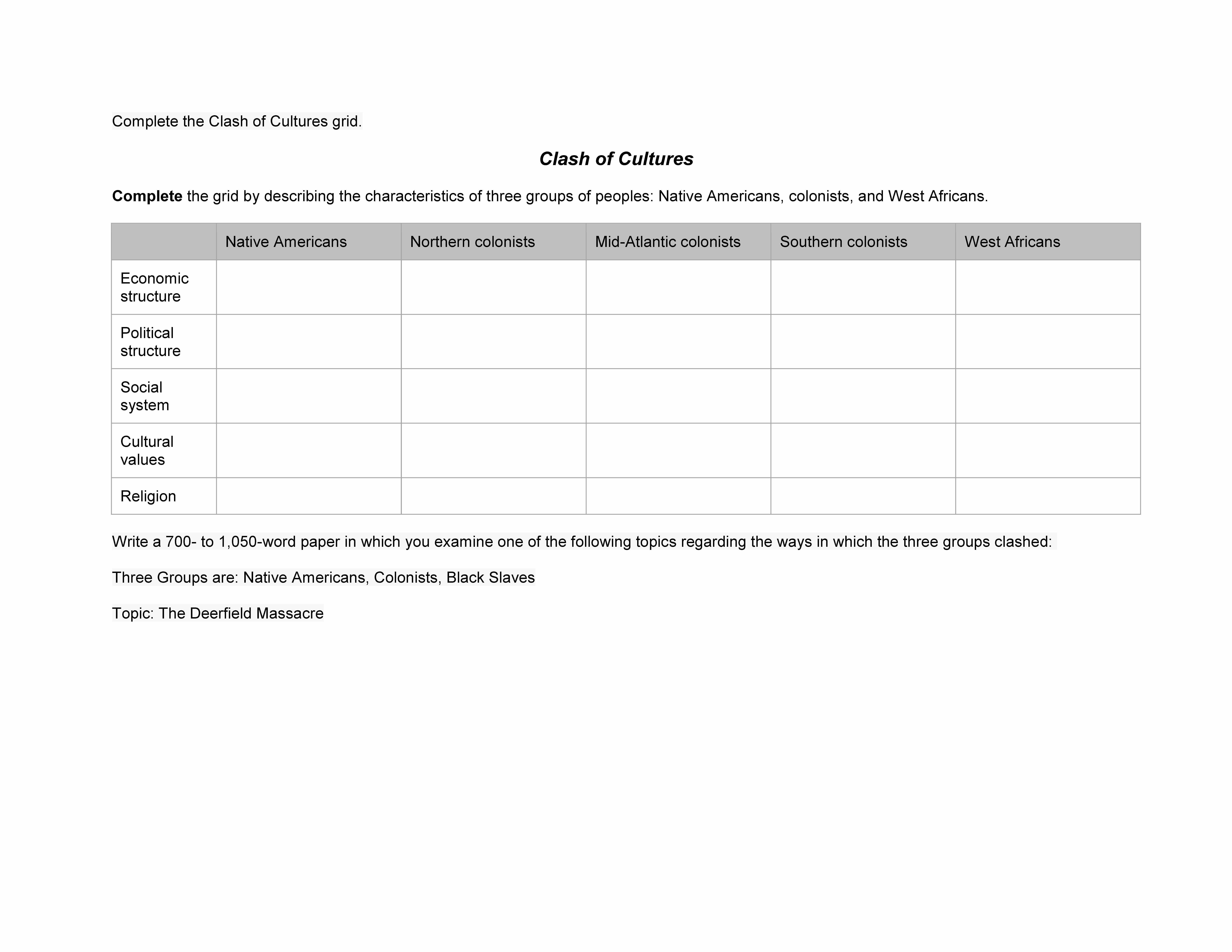 Complete the Clash of Cultures grid. Clash of Cultures Complete t...