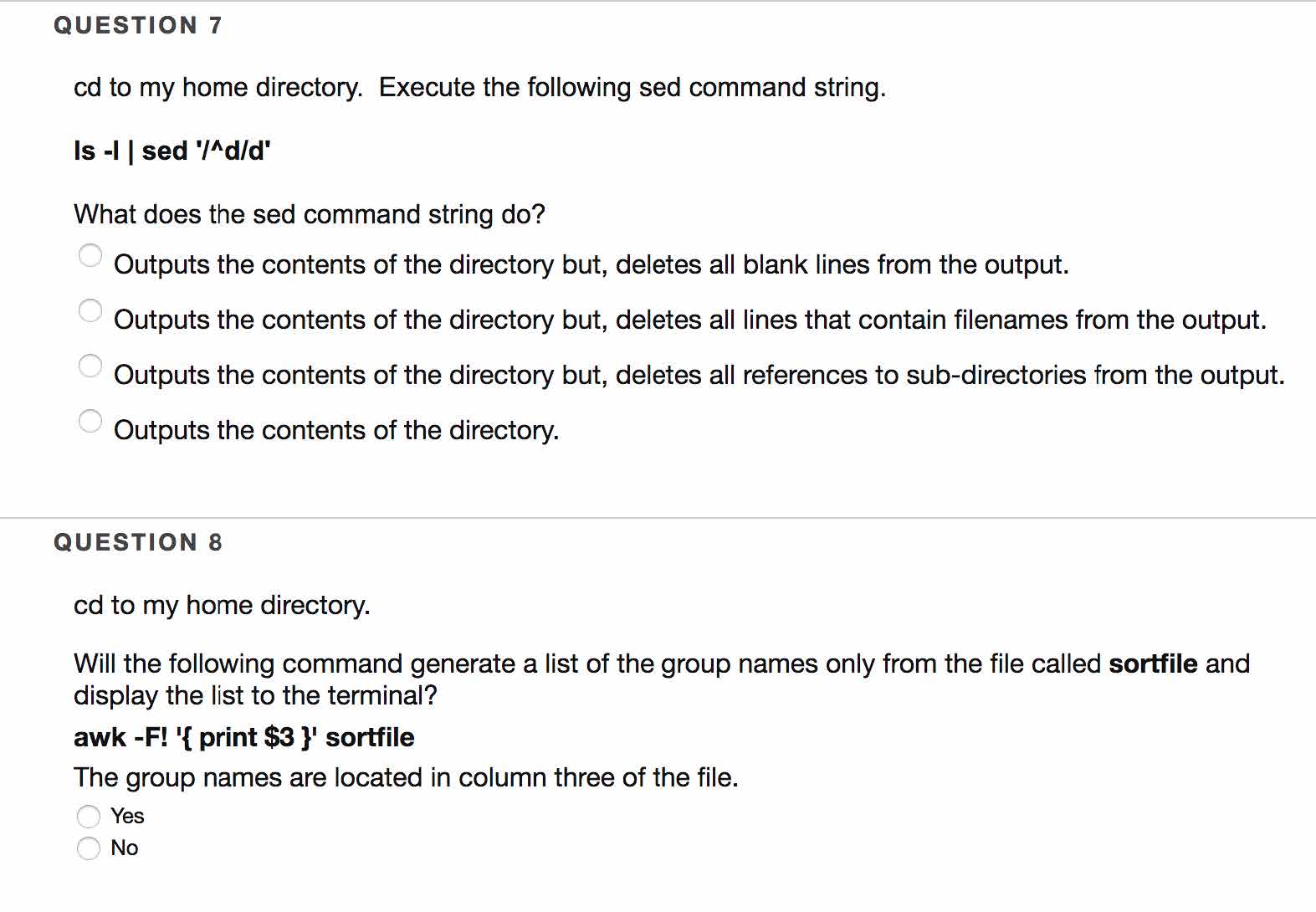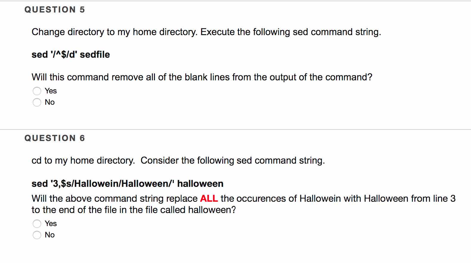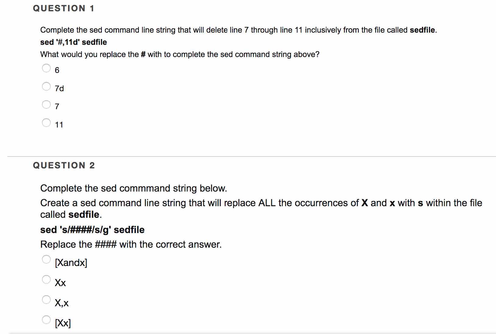 QUESTION 1 Complete the sed command line string that will delete l...