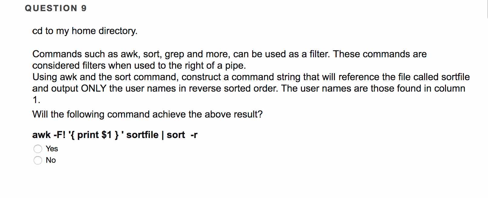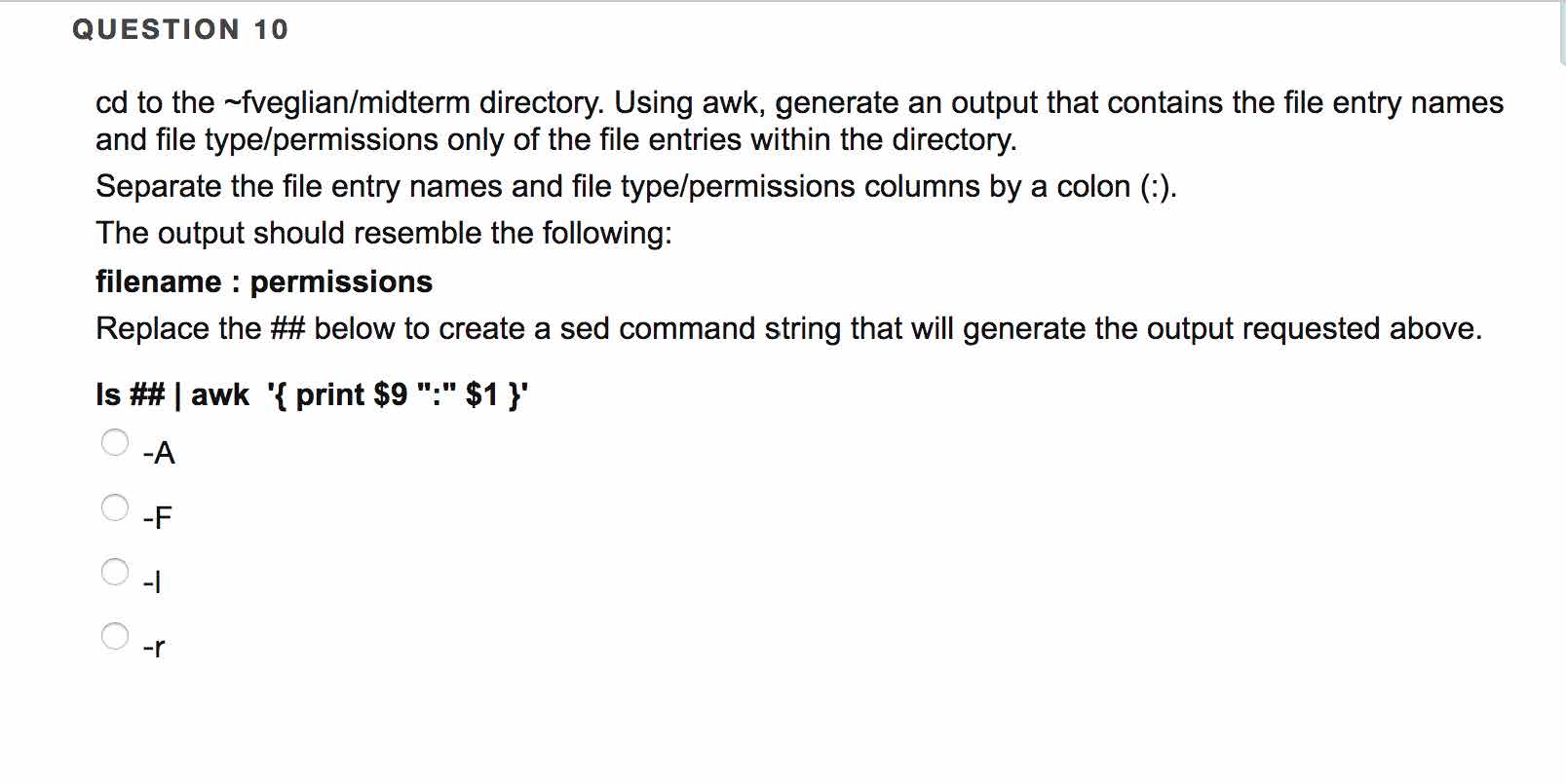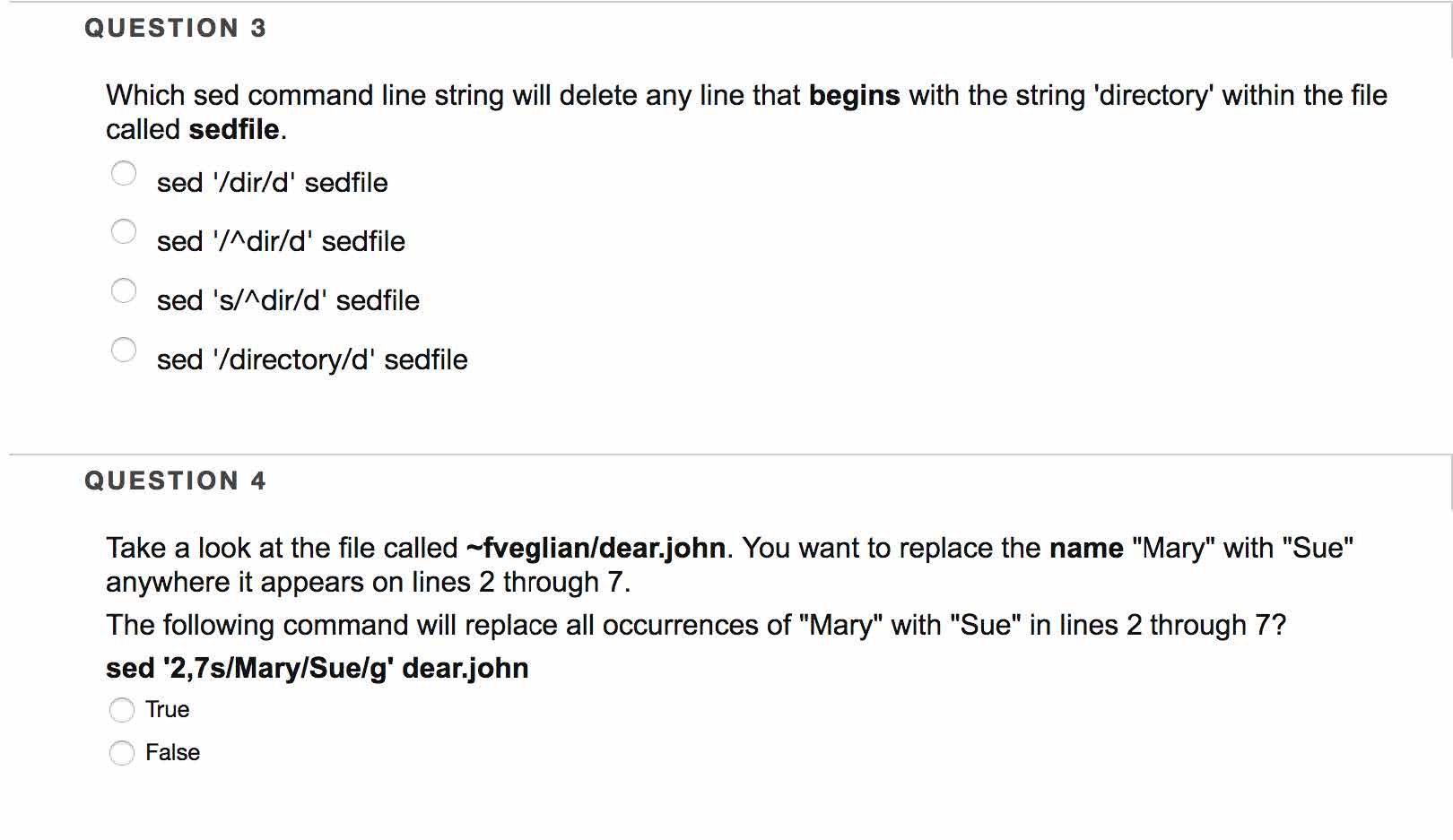 QUESTION 1 Complete the sed command line string that will delete l...