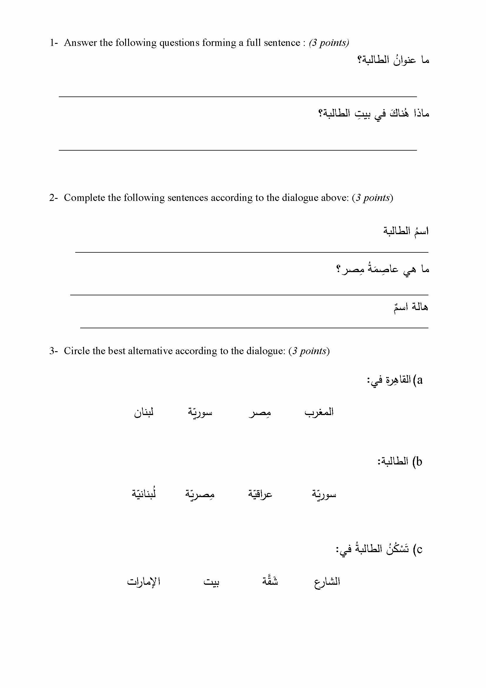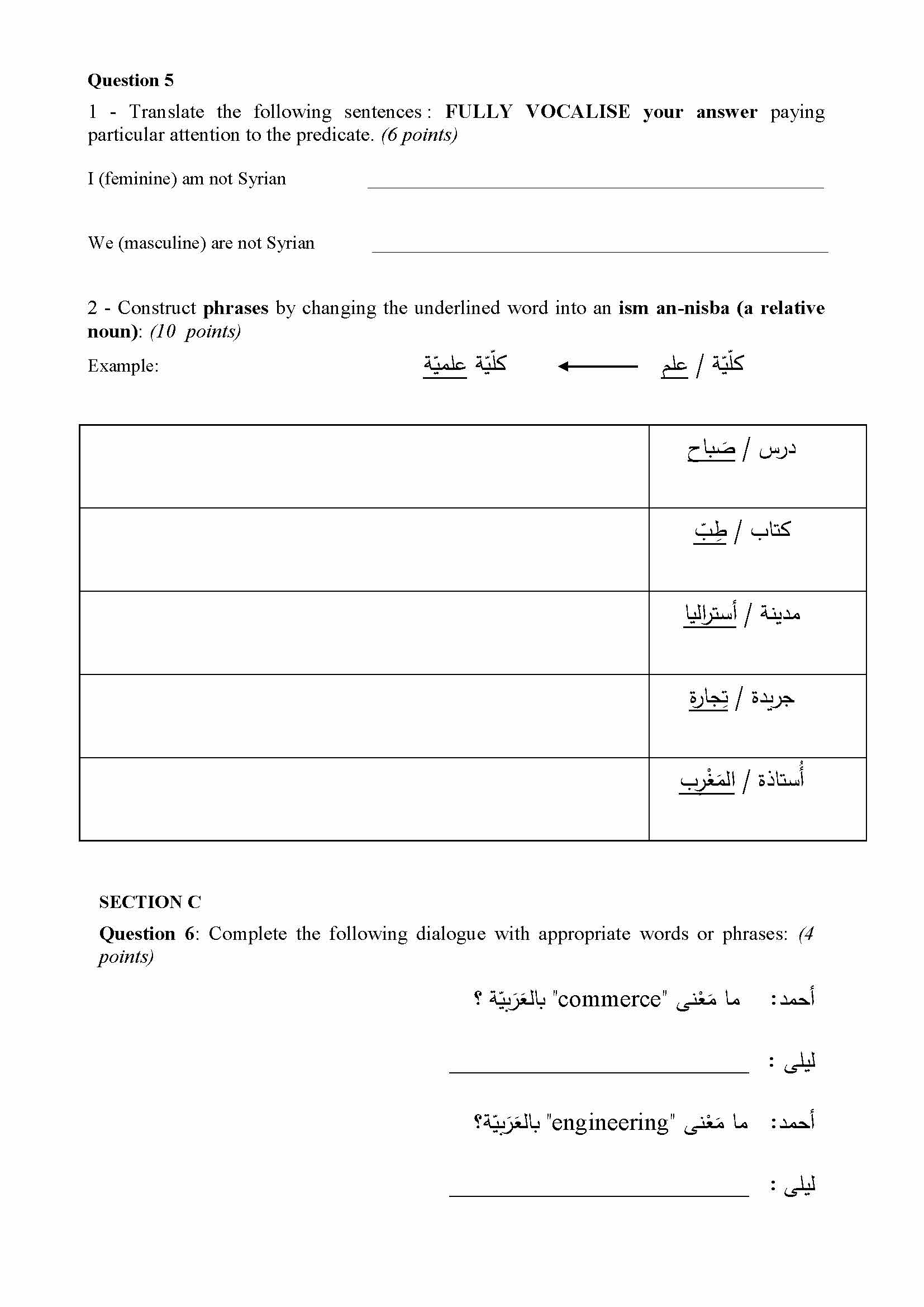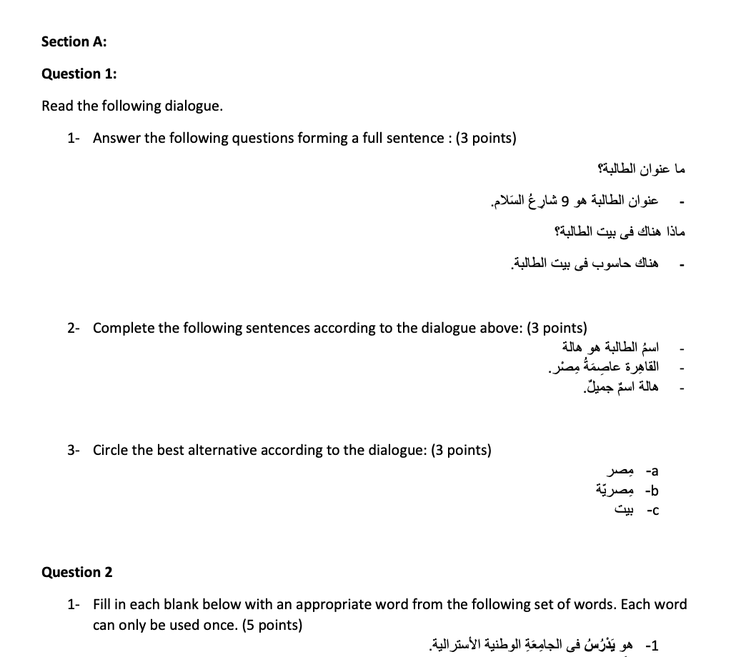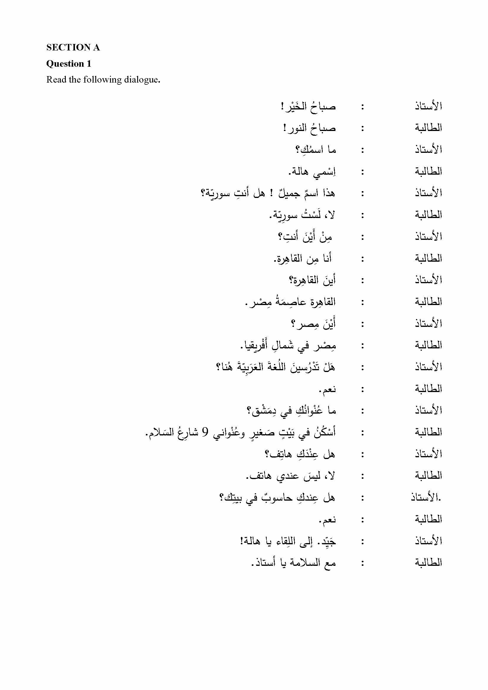 SECTION A Question 1 Read the following dialogue. Ù‘ : صباØ...