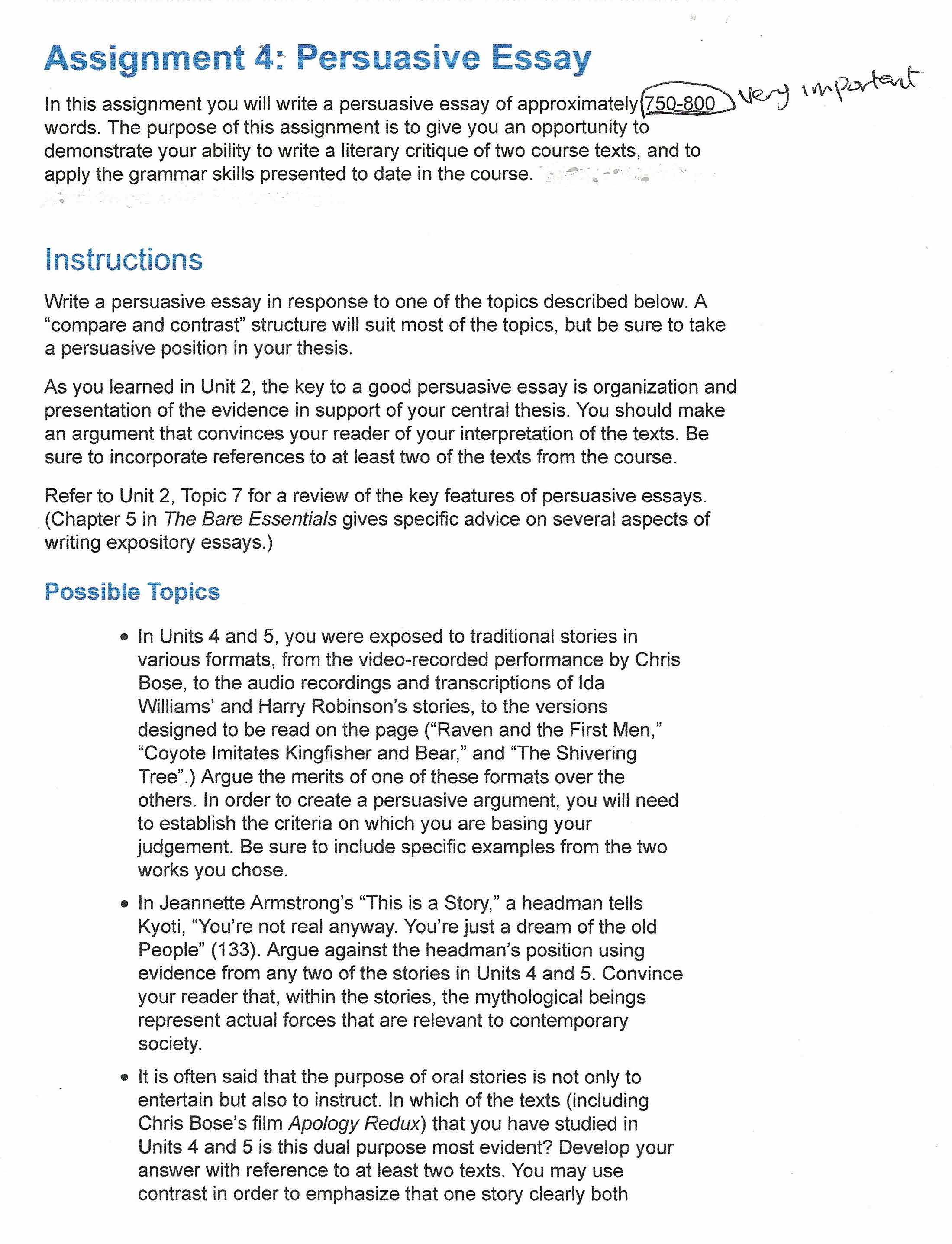 Assignment 4~Persuasive Essay r In this assignment you will write ...