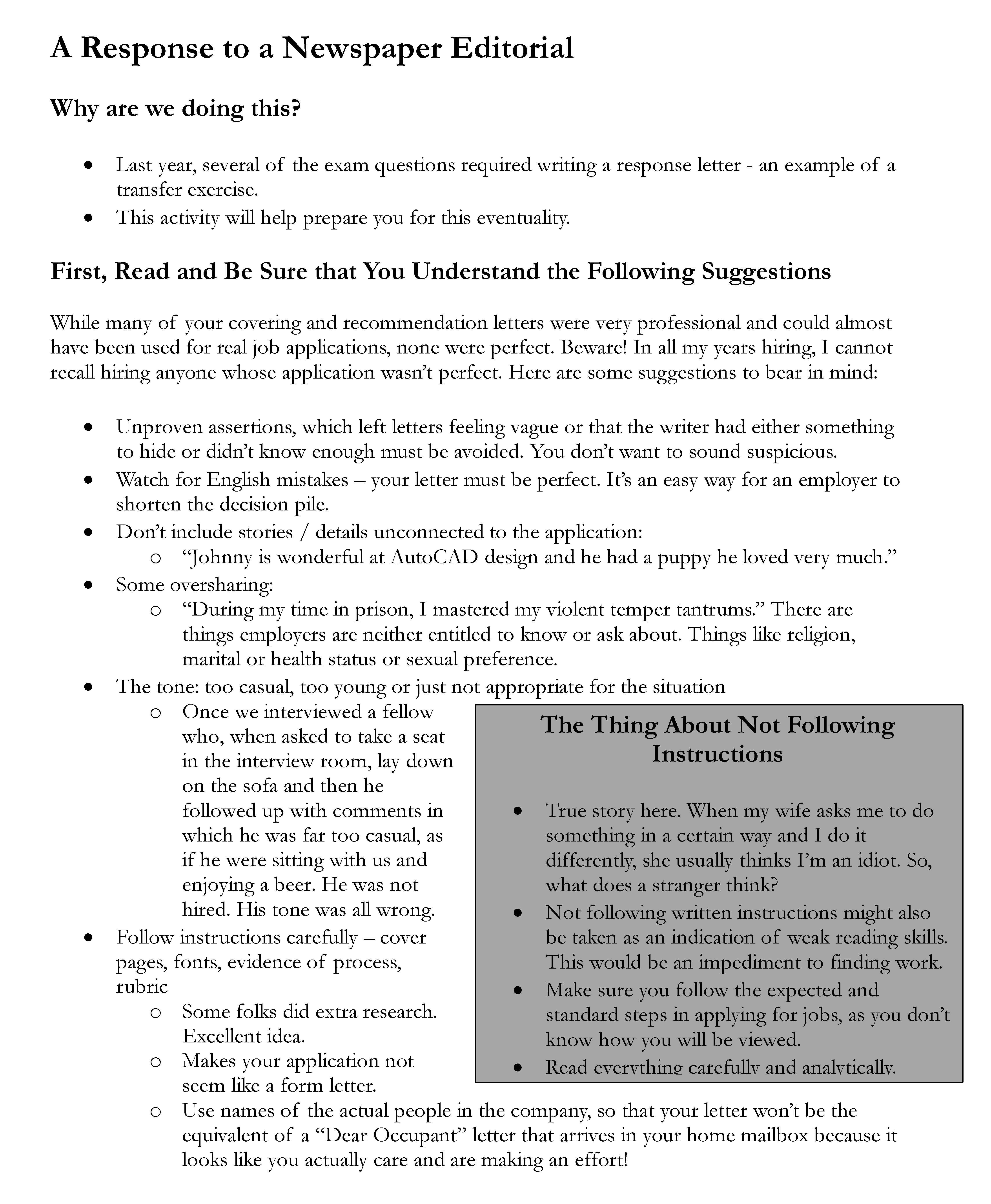 A Response to a Newspaper Editorial Why are we doing this? â€...