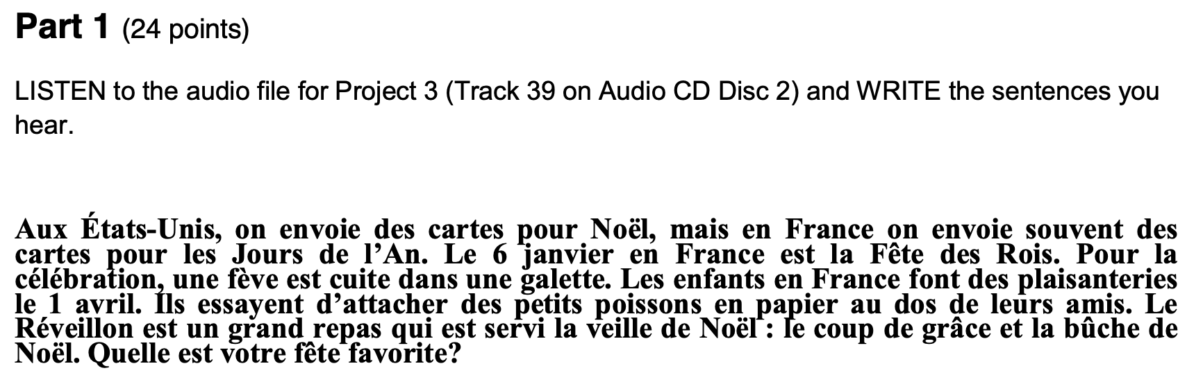 Part 1 LISTEN to the audio file for Project 3 (Track 39 on Audio C...