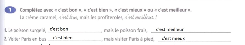 1. Complétez avec " c'est bon ", " c'est bien &qu...