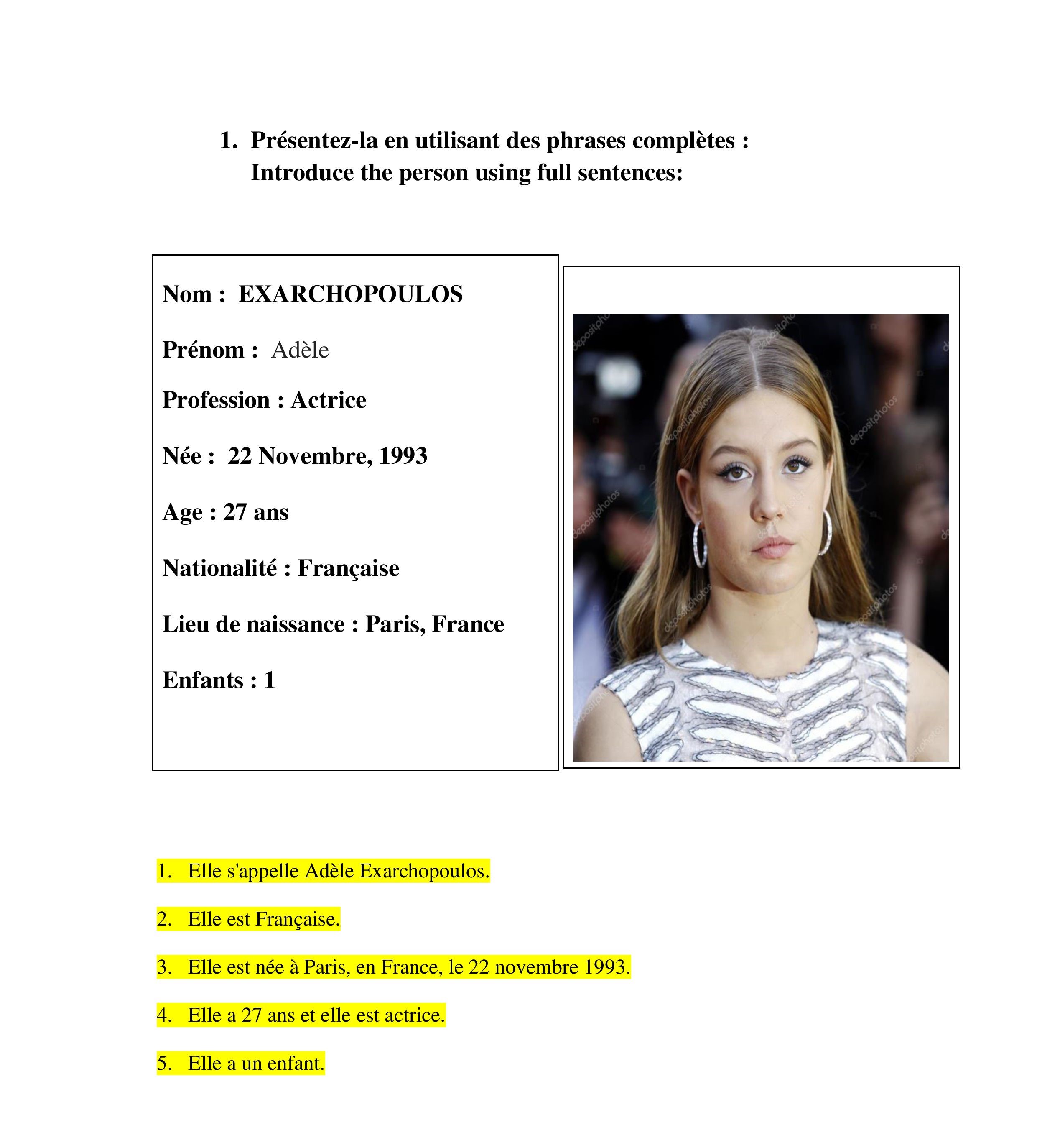 1. Présentez-la en utilisant des phrases complètes : Introduce t...