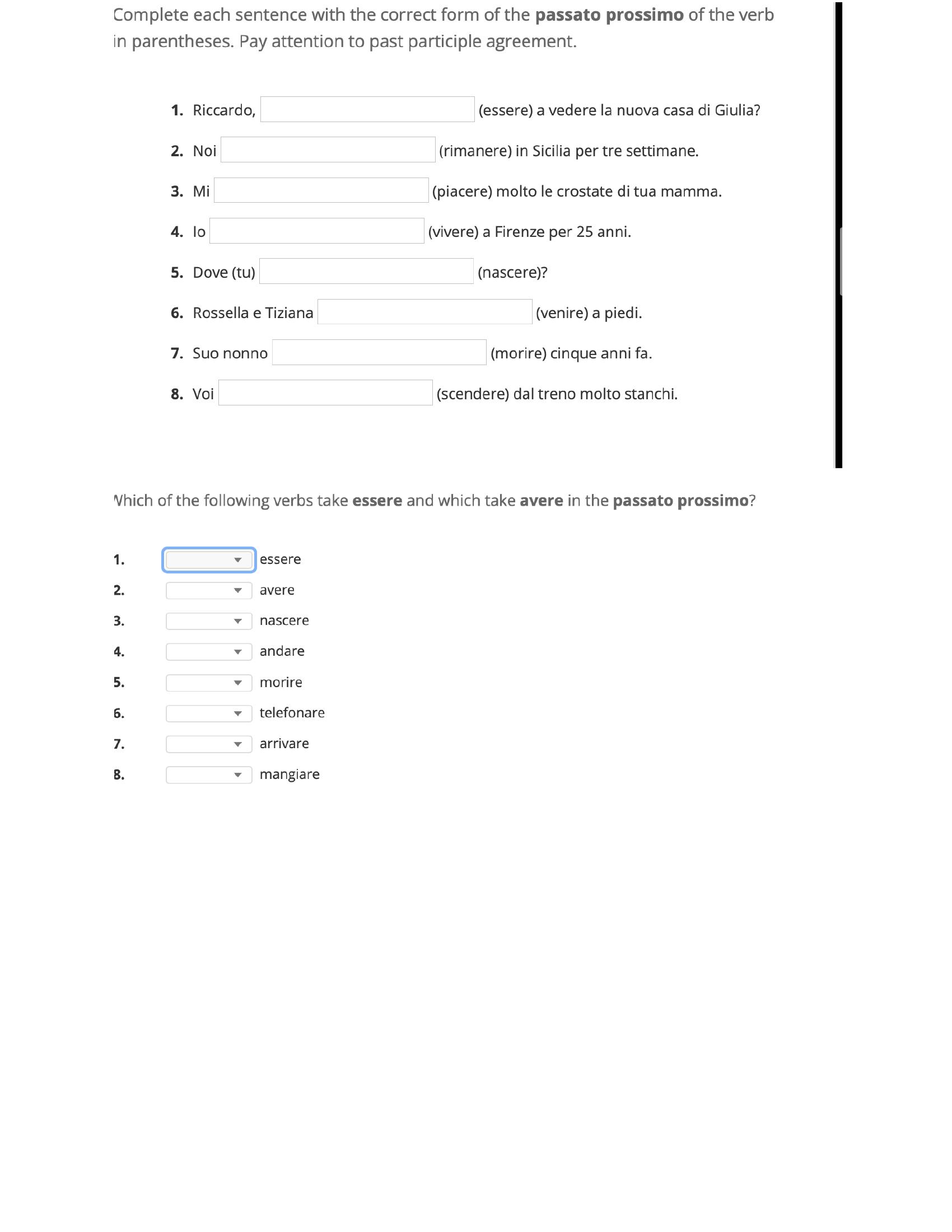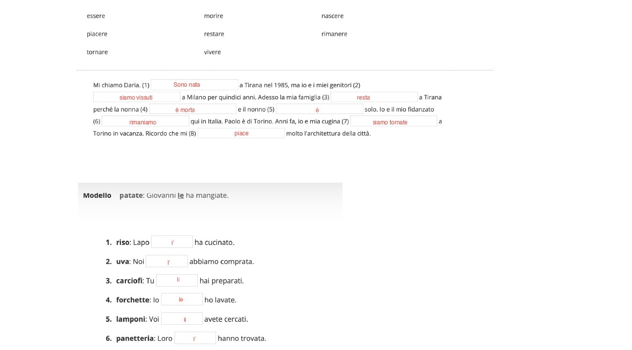 essere morire nascere piacere restare rimanere tornare viver...
