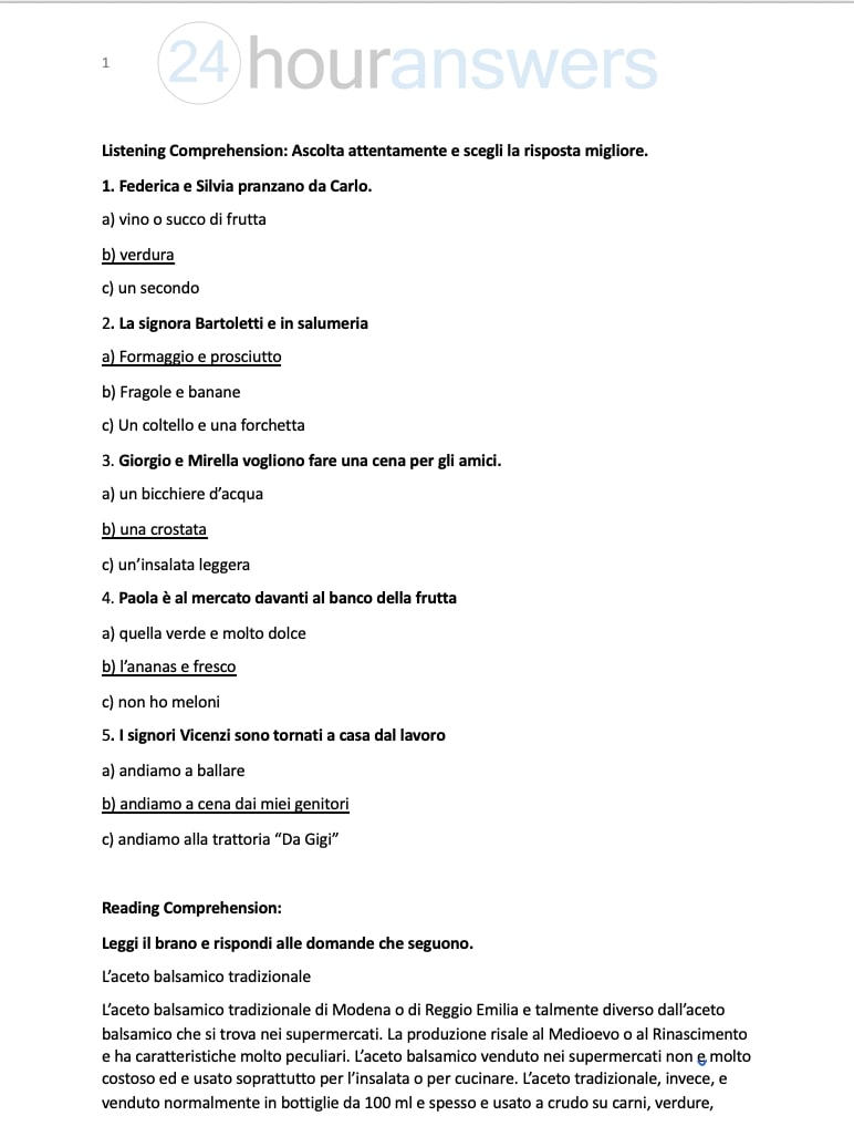 Listening Comprehension: Ascolta attentamente e scegli la risposta ...