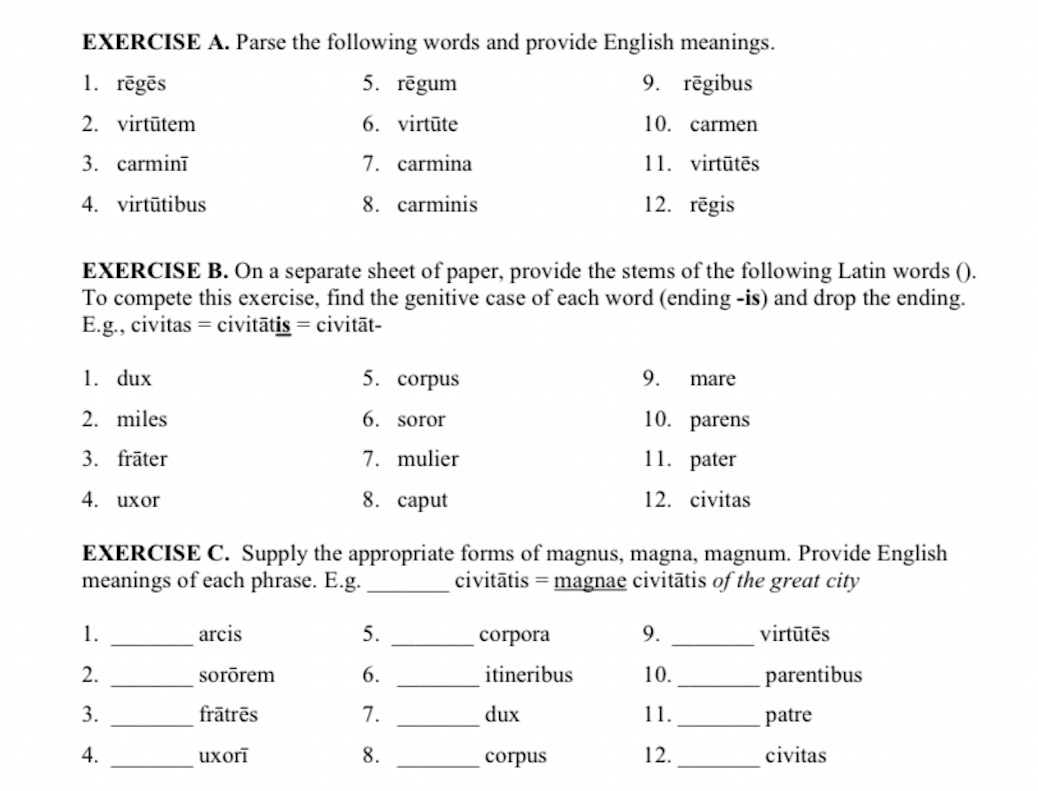 EXERCISE A. Parse the following words and provide English meanings....