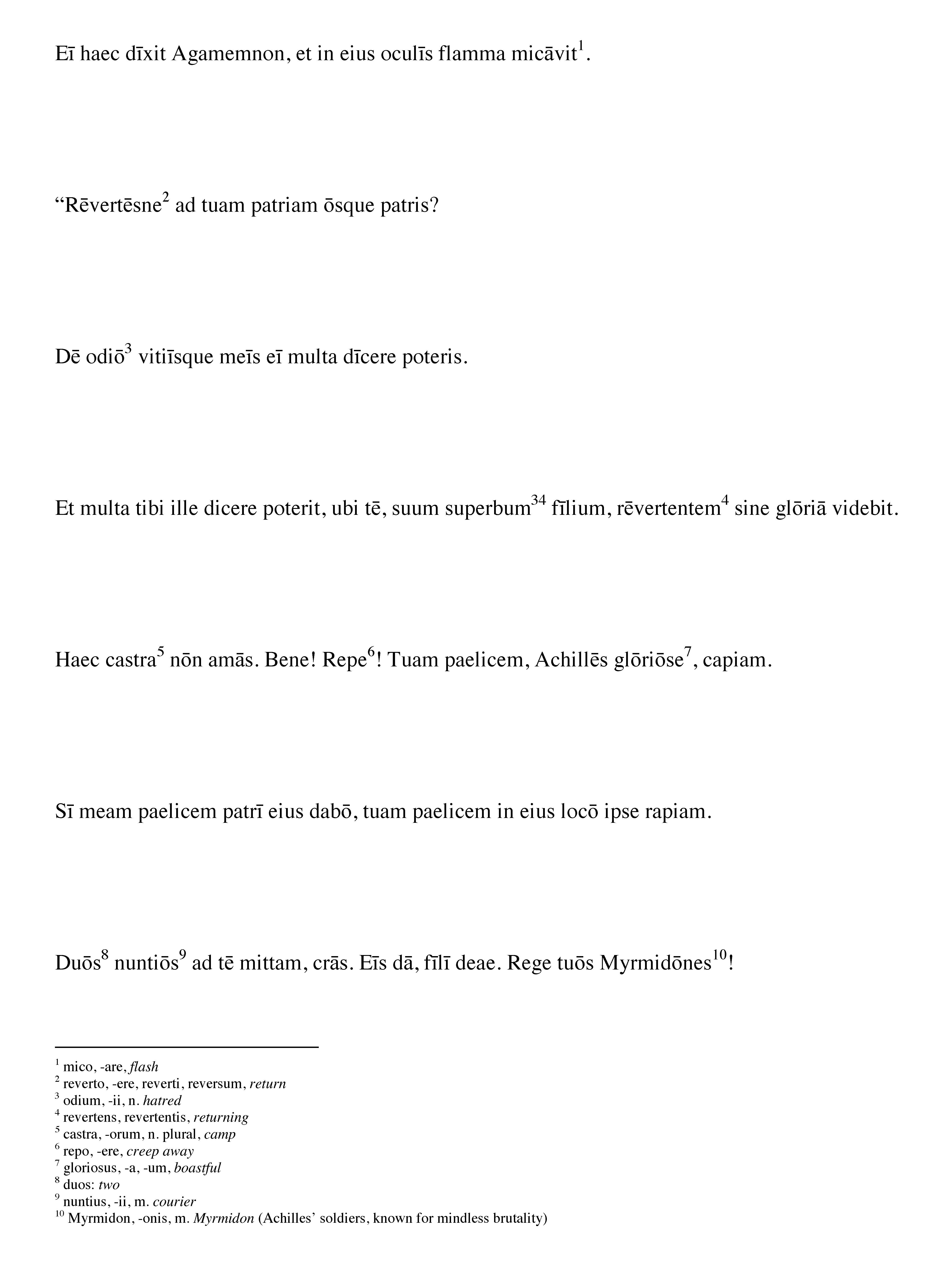 EÄ« haec dÄ«xit Agamemnon, et in eius oculÄ«s flamma micÄvit1. â€...
