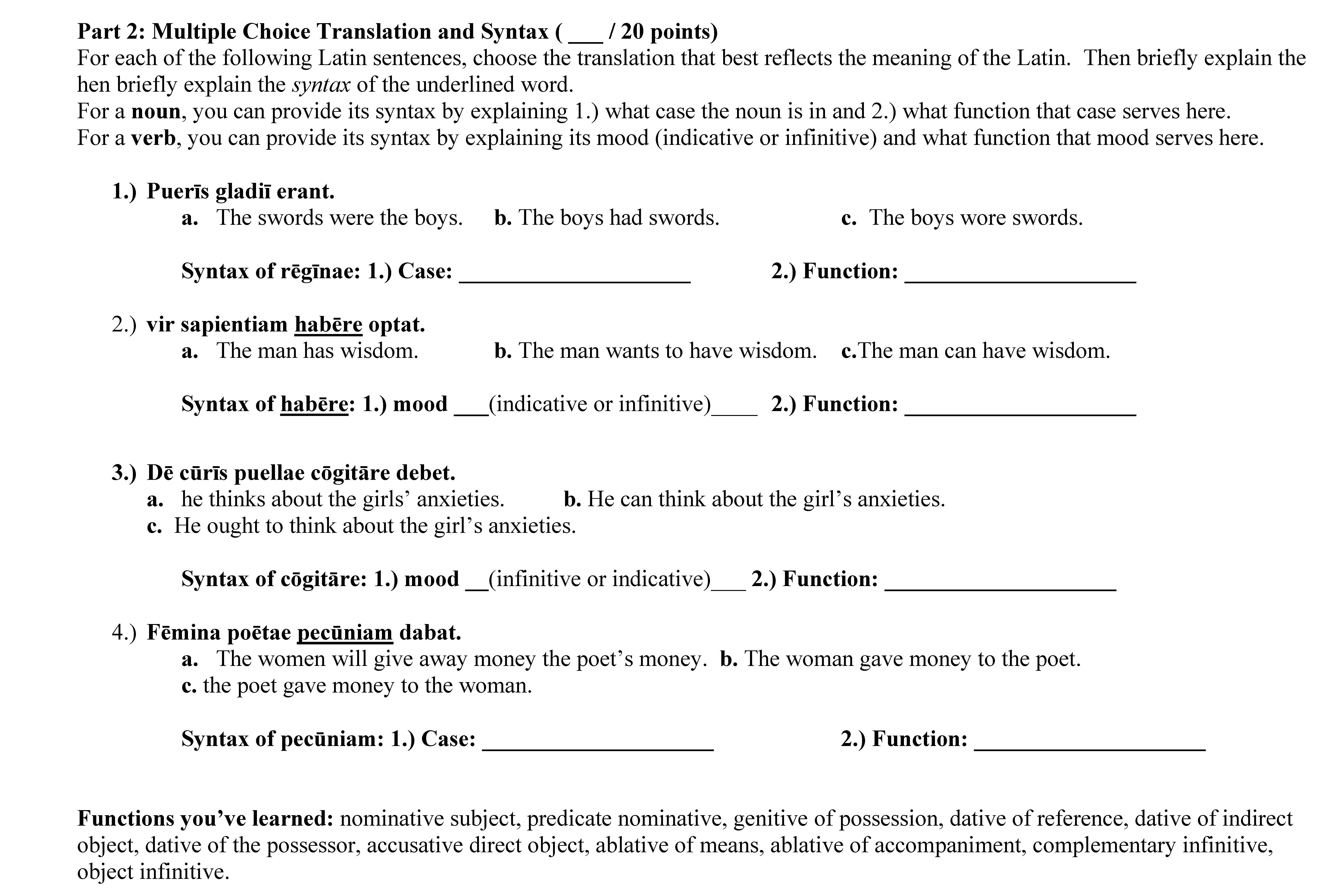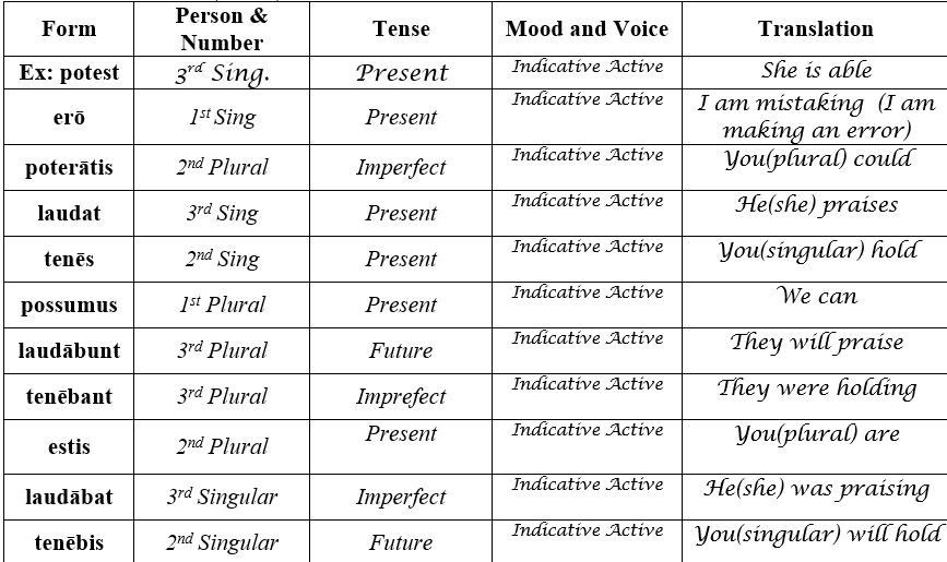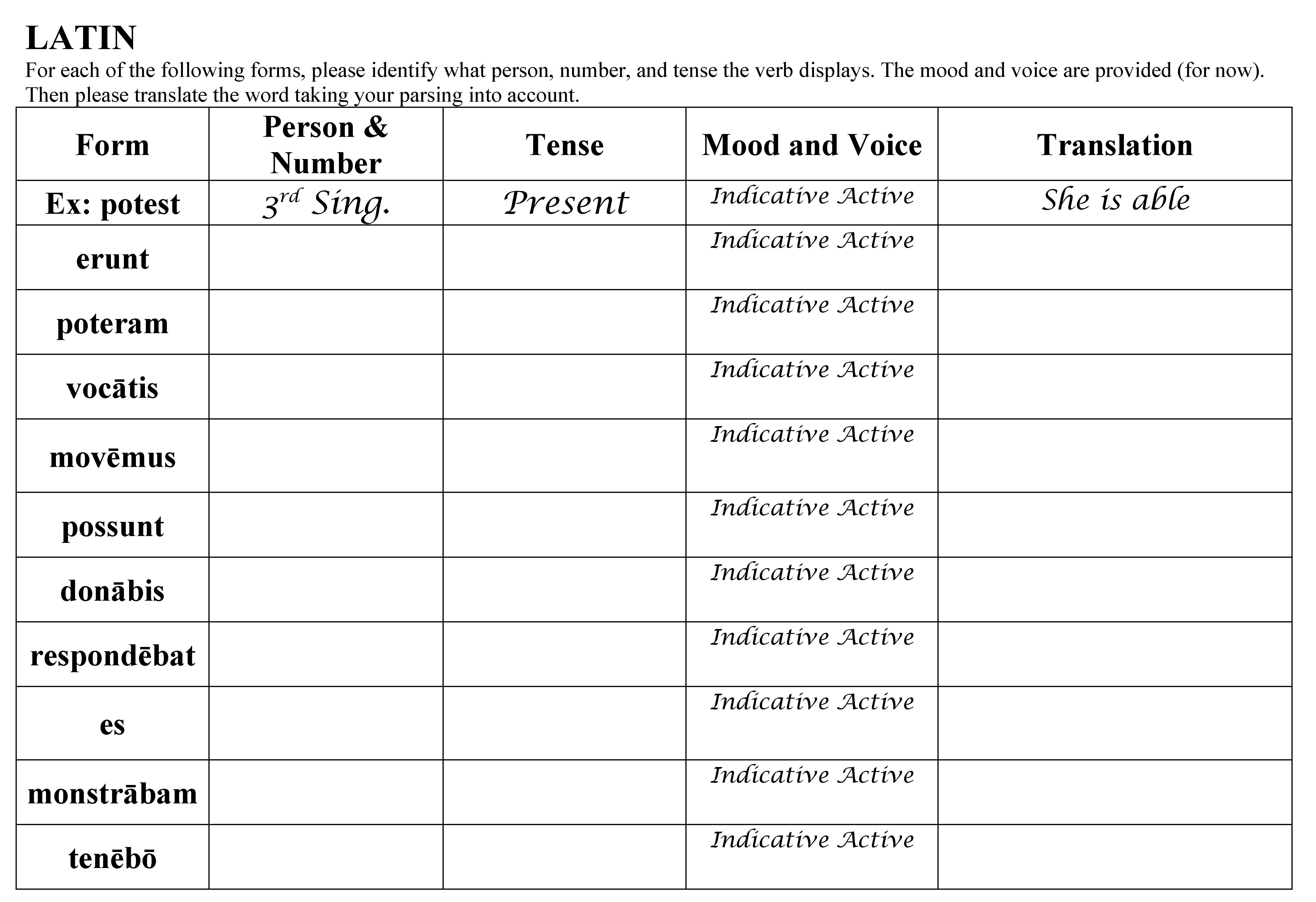 LATIN For each of the following forms, please identify what person...