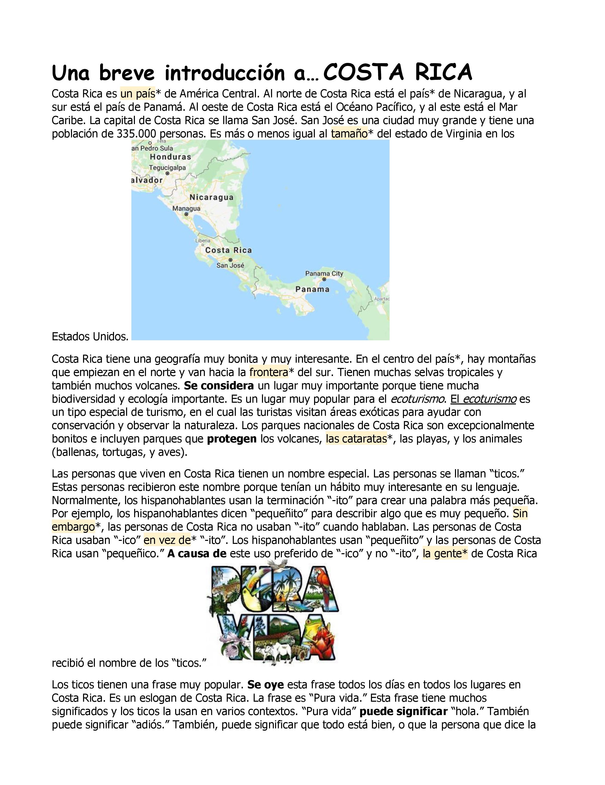 Una breve introducción a... COSTA RICA Costa Rica es un paÃs...