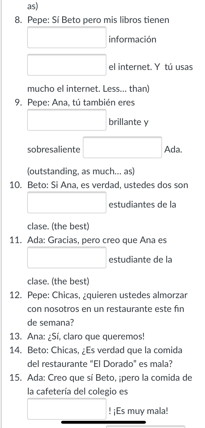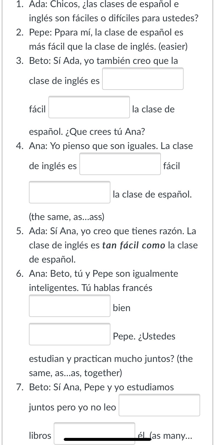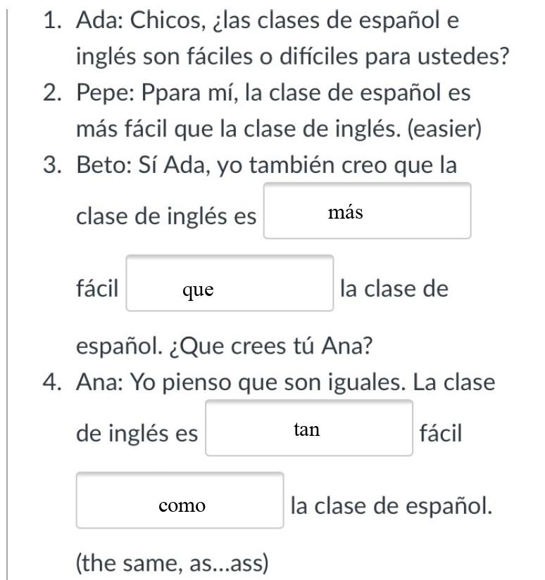 1. Ada: Chicos, ¿las clases de español e inglés son fáciles o...