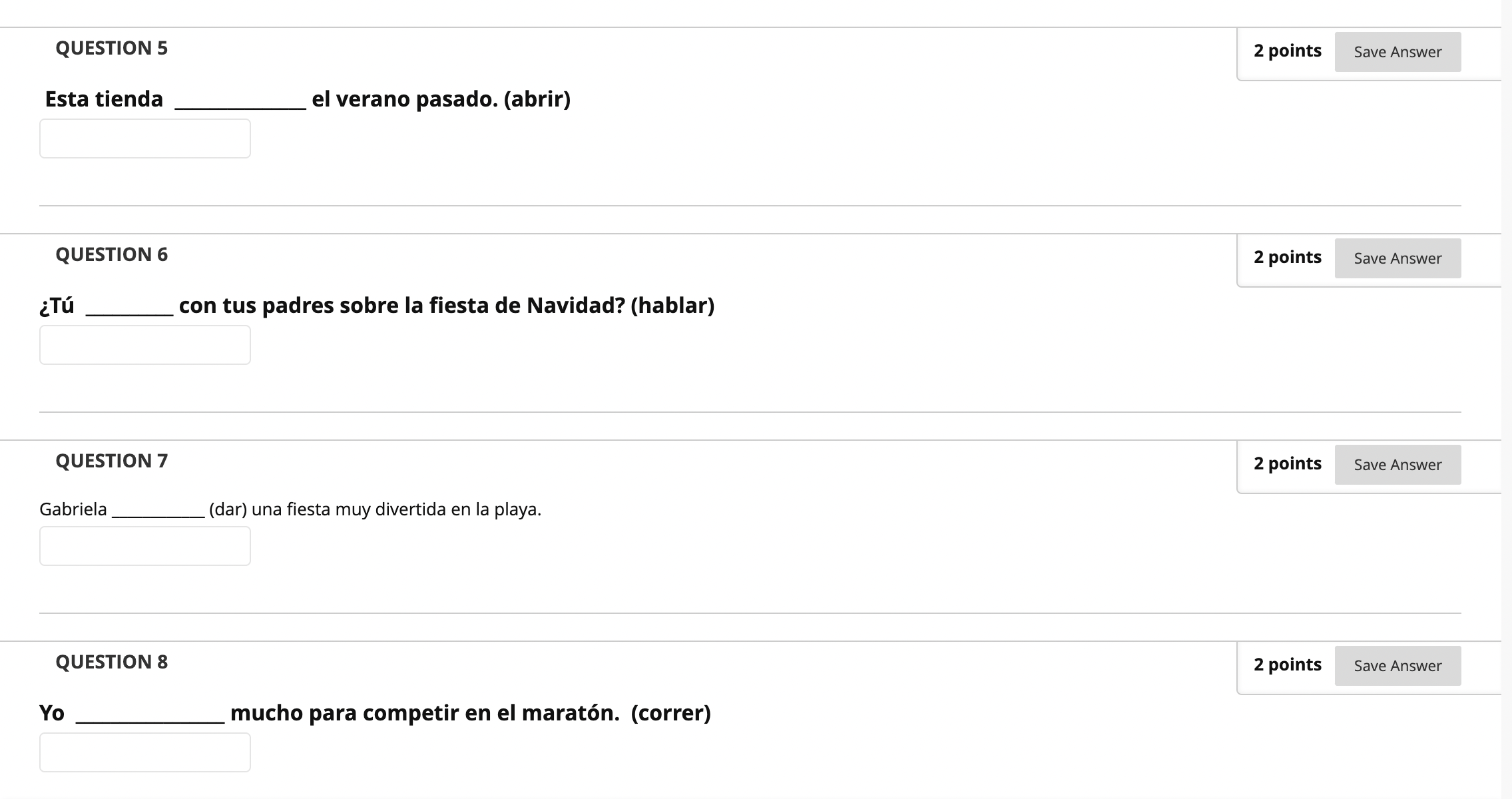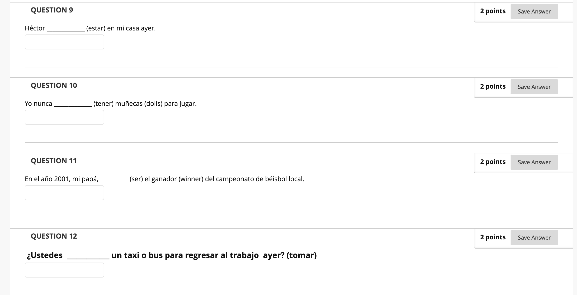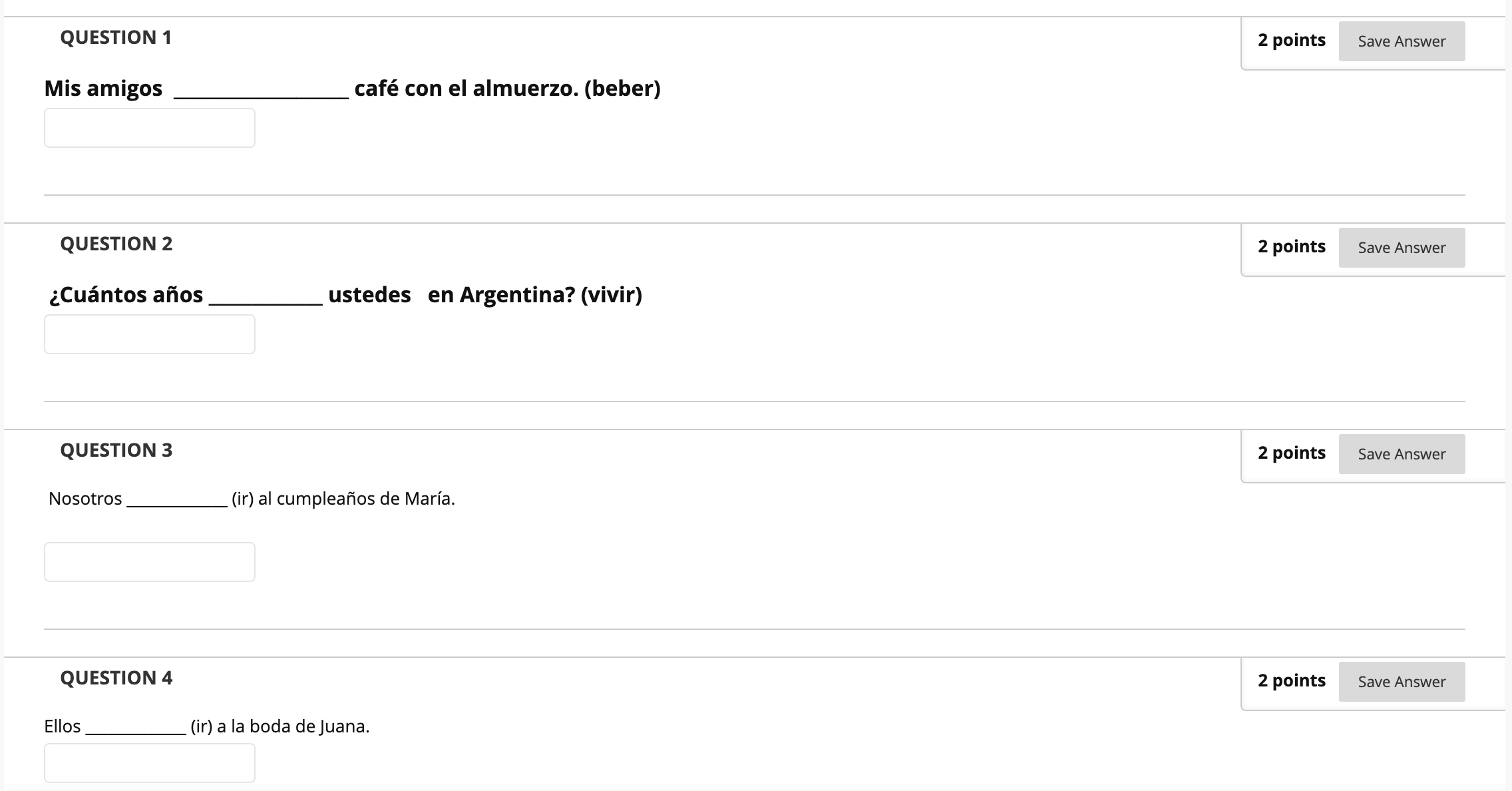 QUESTION 1 2 points Save Answer Mis amigos café con el almuerz...