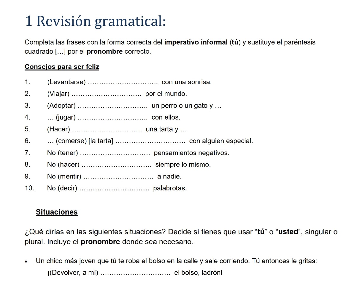 1 Revisión gramatical: Completa las frases con la forma correcta...