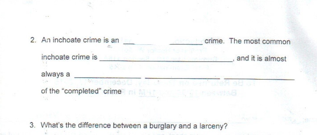 2. An inchoate crime is an crime. The most common inchoate crime...
