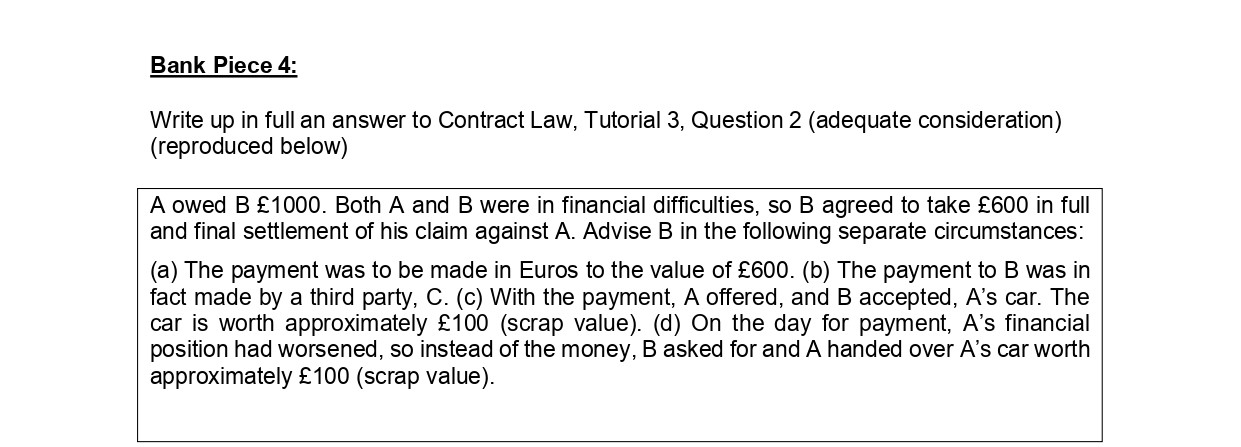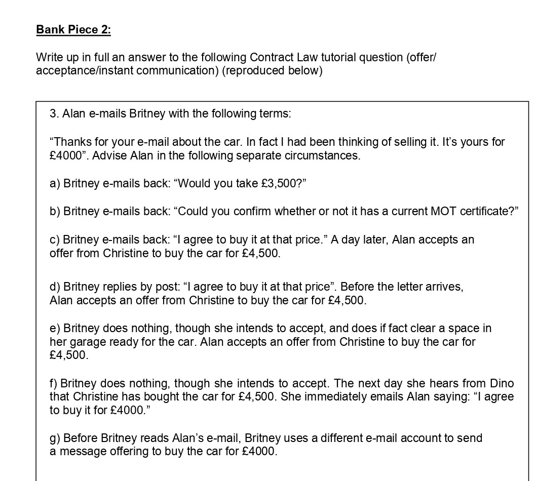 Bank Piece 2: Write up in full an answer to the following Contract...