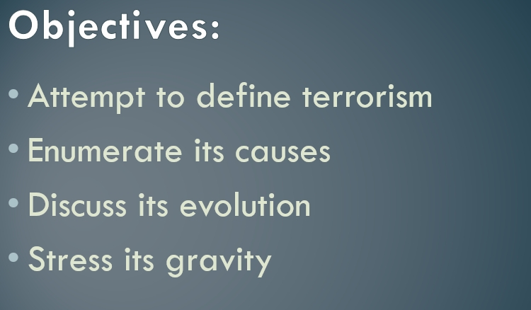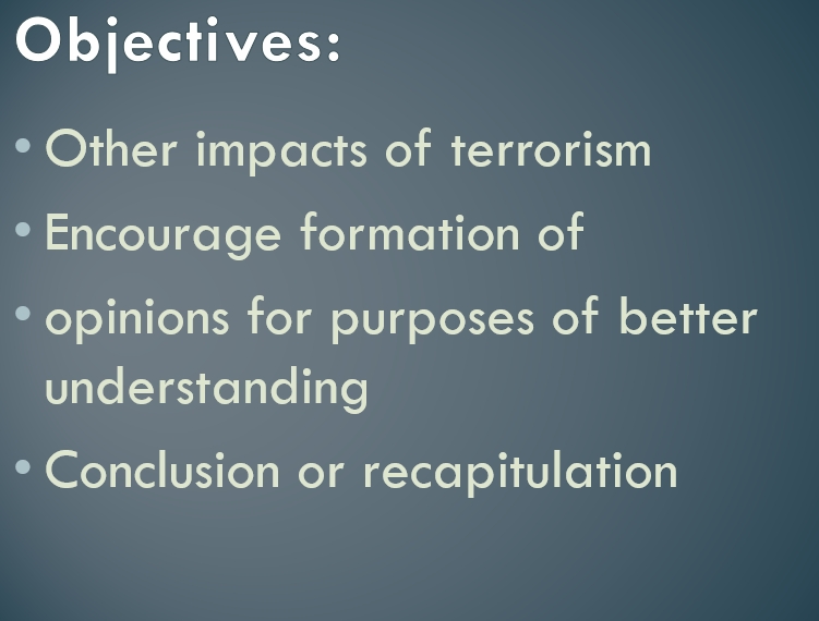 Make a PowerPoint presentation on the following report: Terrorism T...