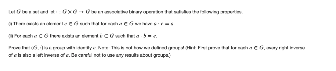 Let G be a set and let : G x G G be an associative binary operation...