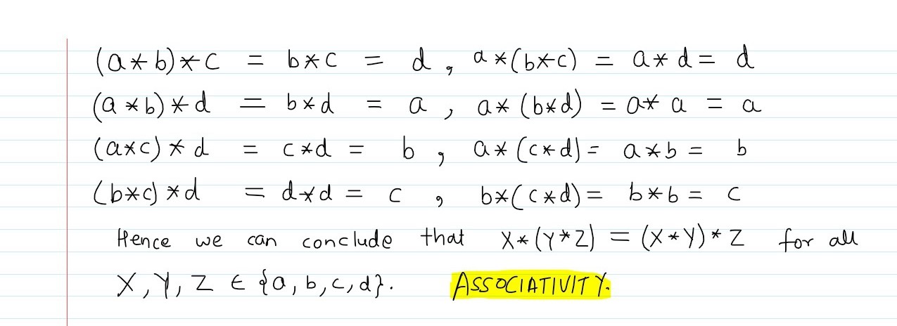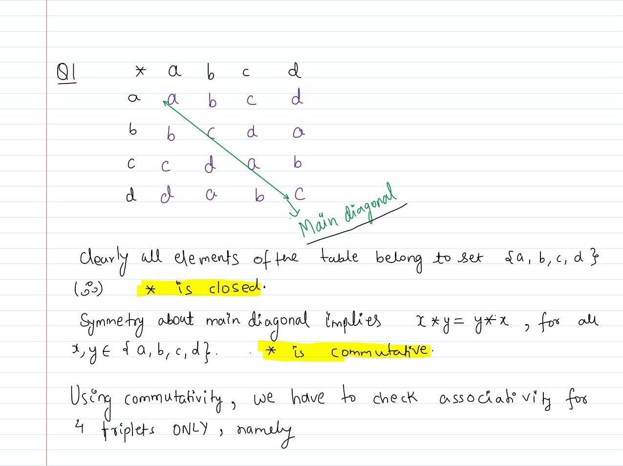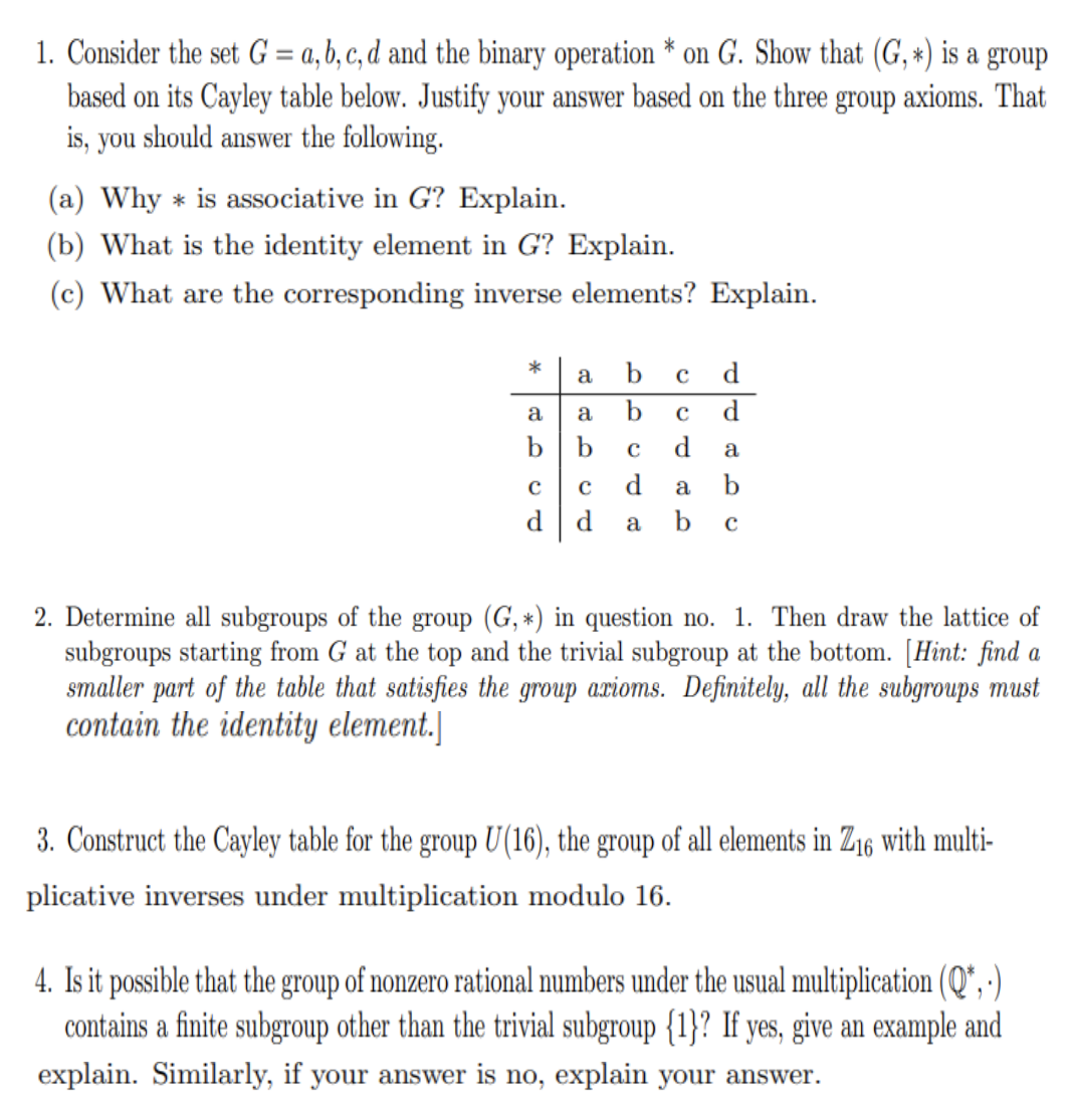 1. Consider the set G = a, b, c, d and the binary operation * on G....