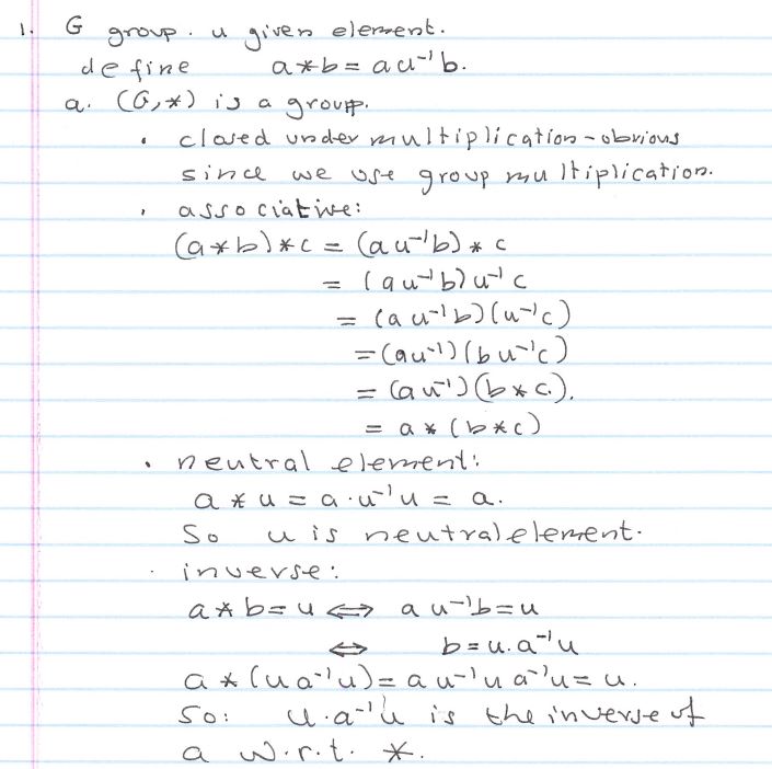 1 – G is a group, ∀ a, b ∈ G, ab. Pick u ∈ G. a * = auâ»...