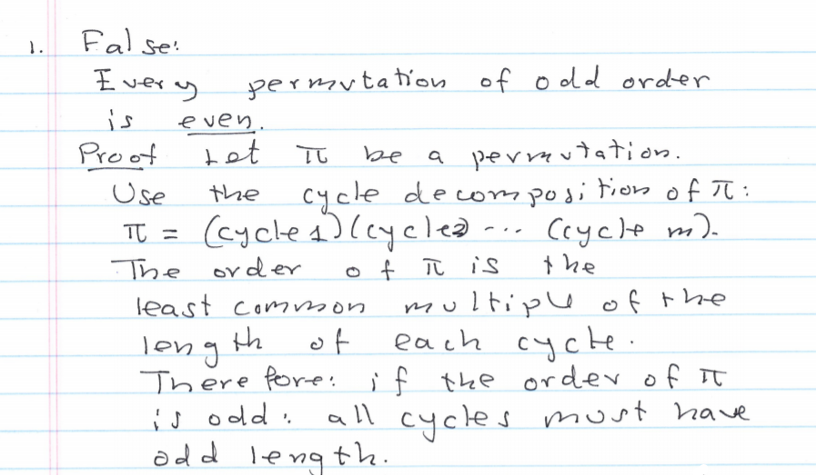 True or False and prove it or disprove it. 1.There exists a permut...