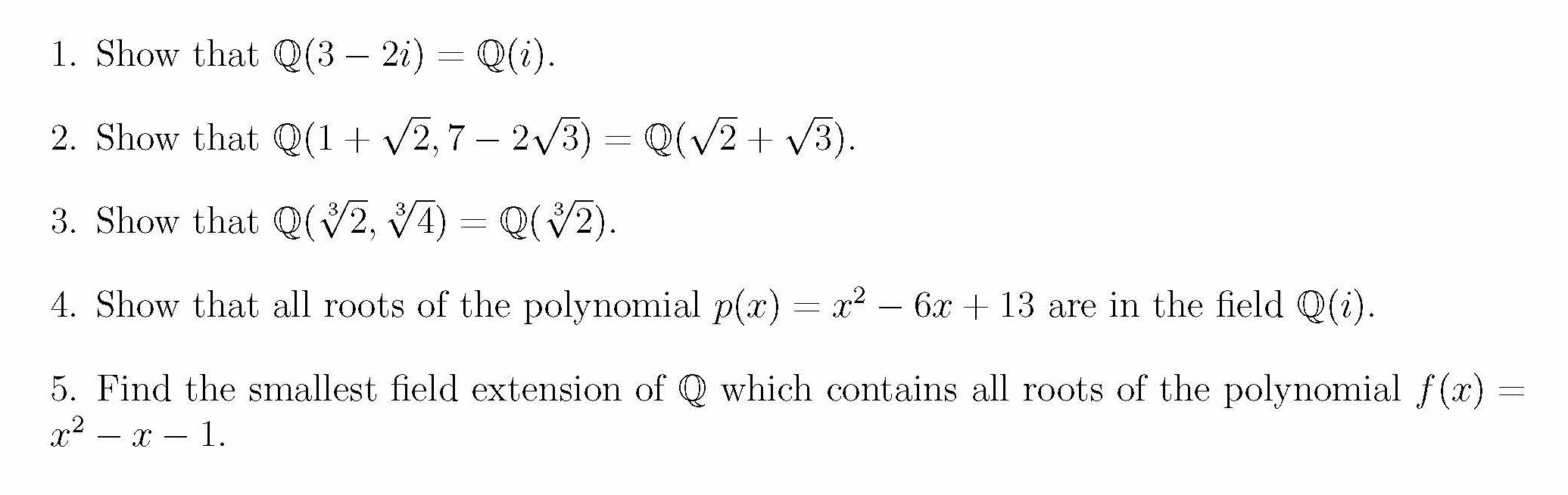 1. Show that Q(3 - 2i) = Q(i). 2. Show that Q(1 + V2,7 - = 3. Sho...
