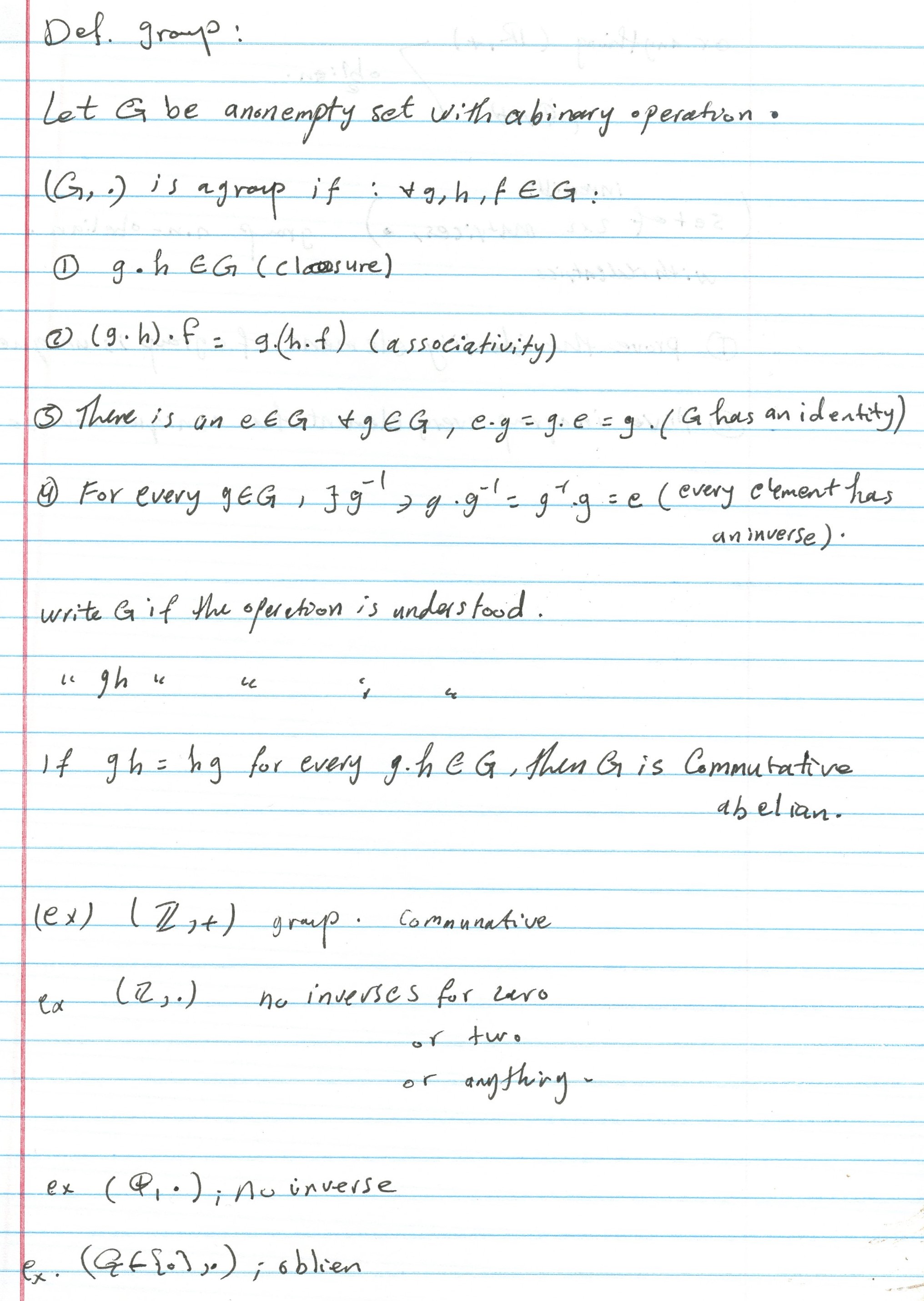 Def. gramp: let G be anonempty set with abinary operation. (G, .)...