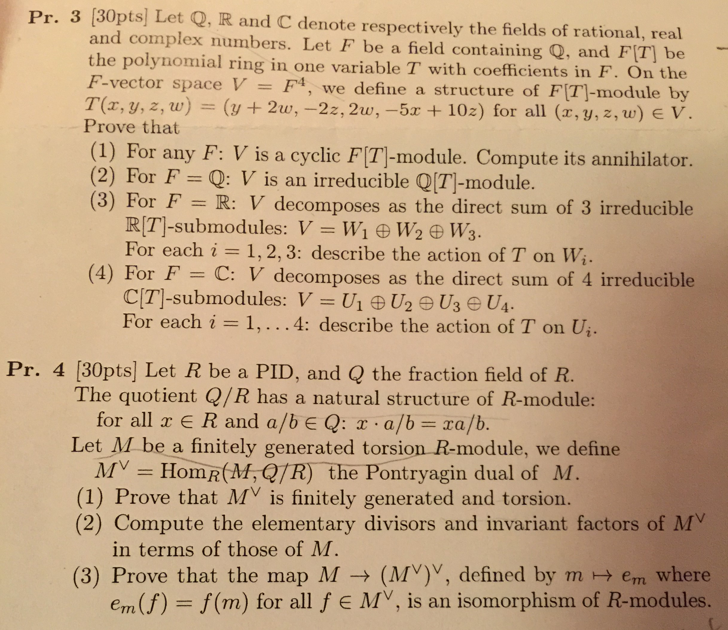 to part 1 Ior IV not torsion free. Pr. 3 [30pts] Let Q. R and C de...