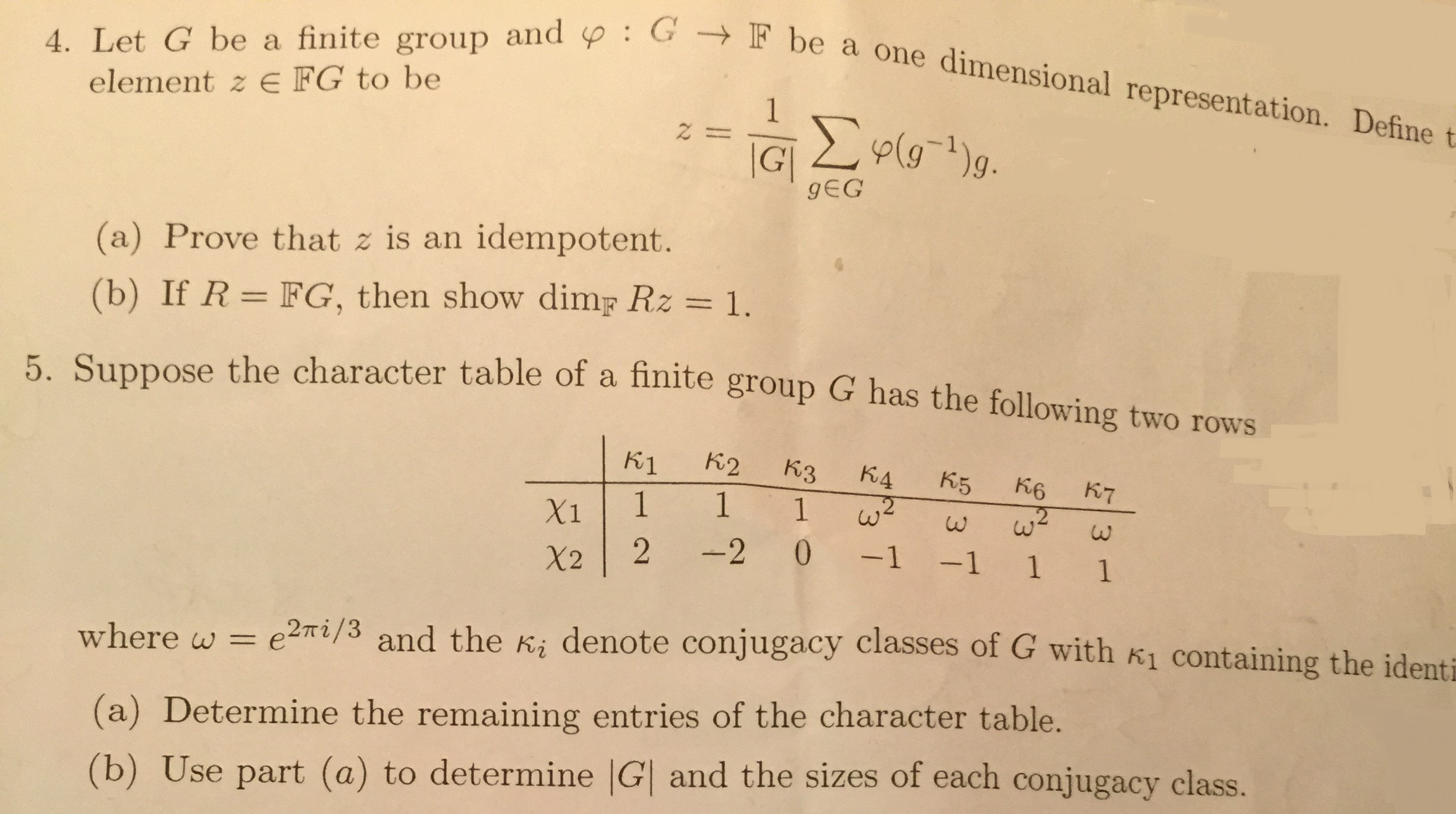 4. Let G be a finite group and 4 : G F [3 resp element Z E FG t...