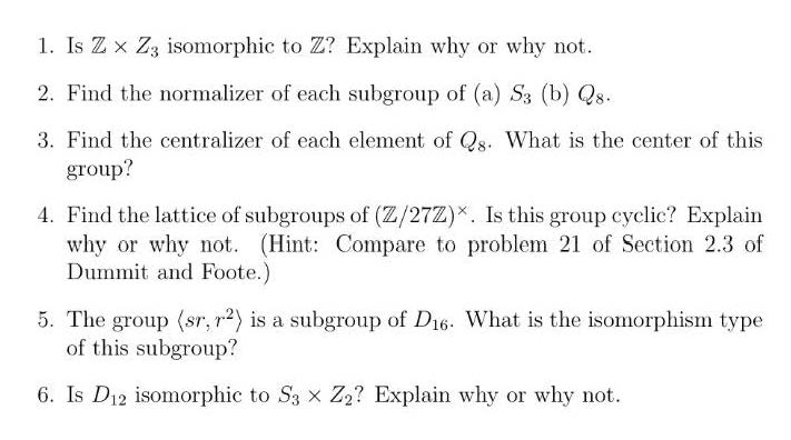 1. Is Z X Z3 isomorphic to Z? Explain why or why not. 2. Find the ...