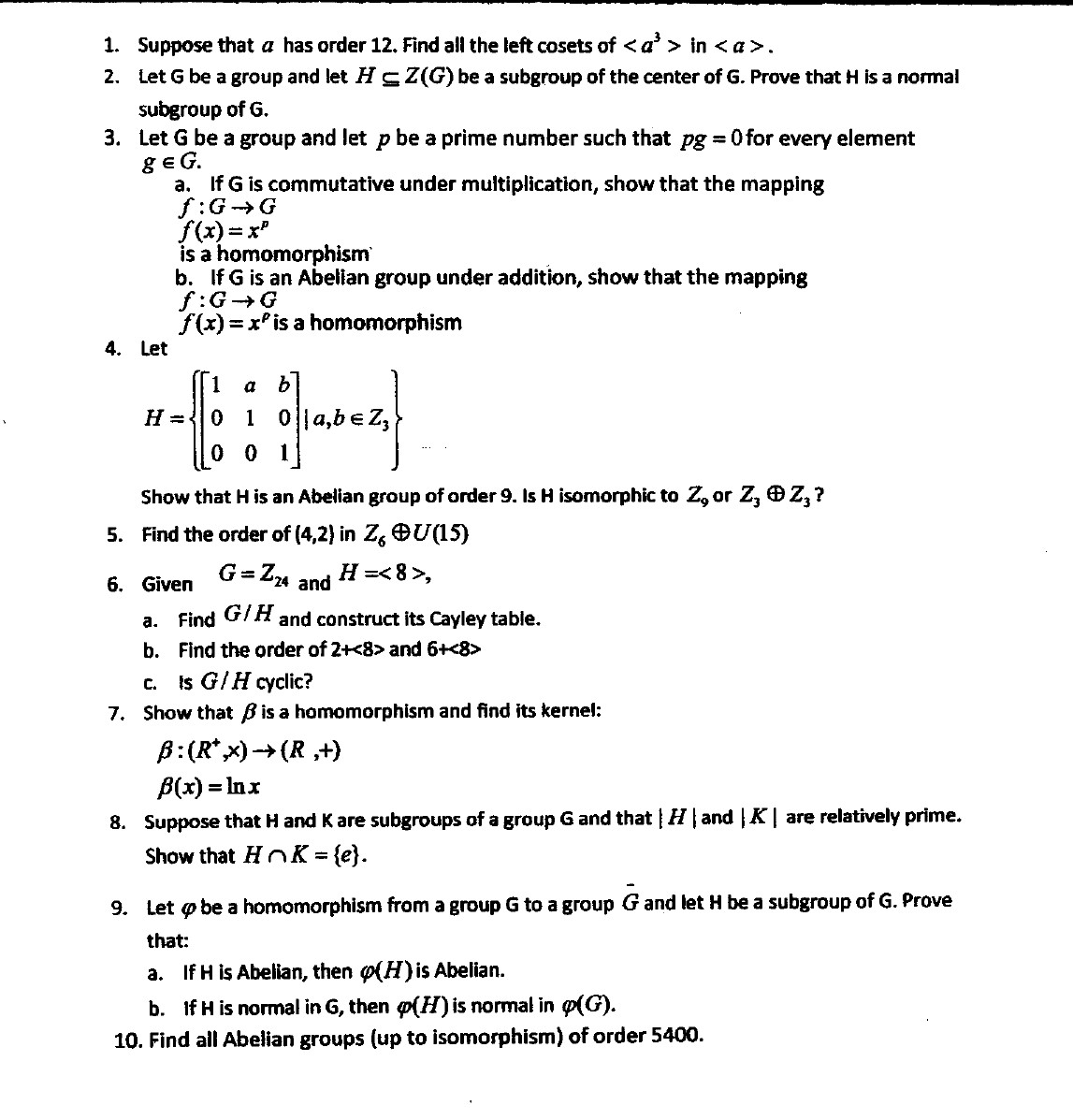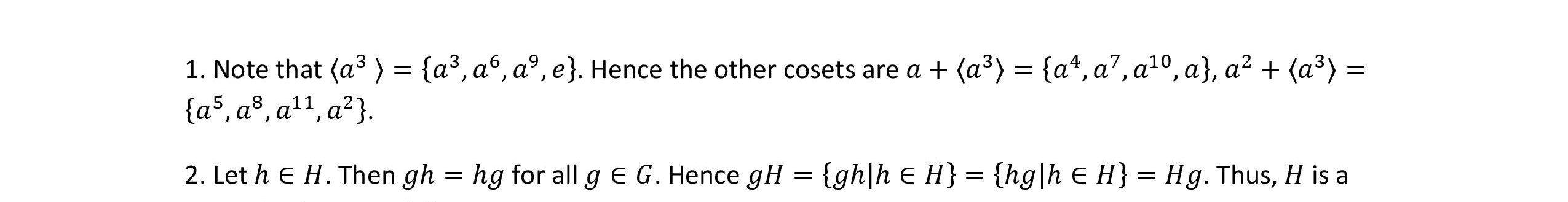 1. Suppose that a has order 12. Find all the left cosets of in . ...