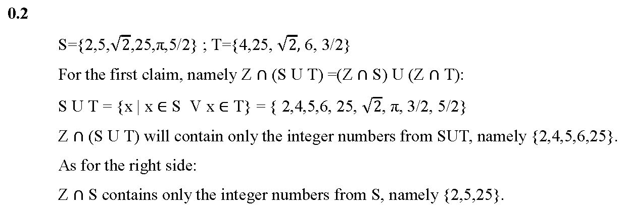 0.2) Given the sets: Z, S={2,5,√2,25,π,5/2} ; T={4,25, √2, 6,...