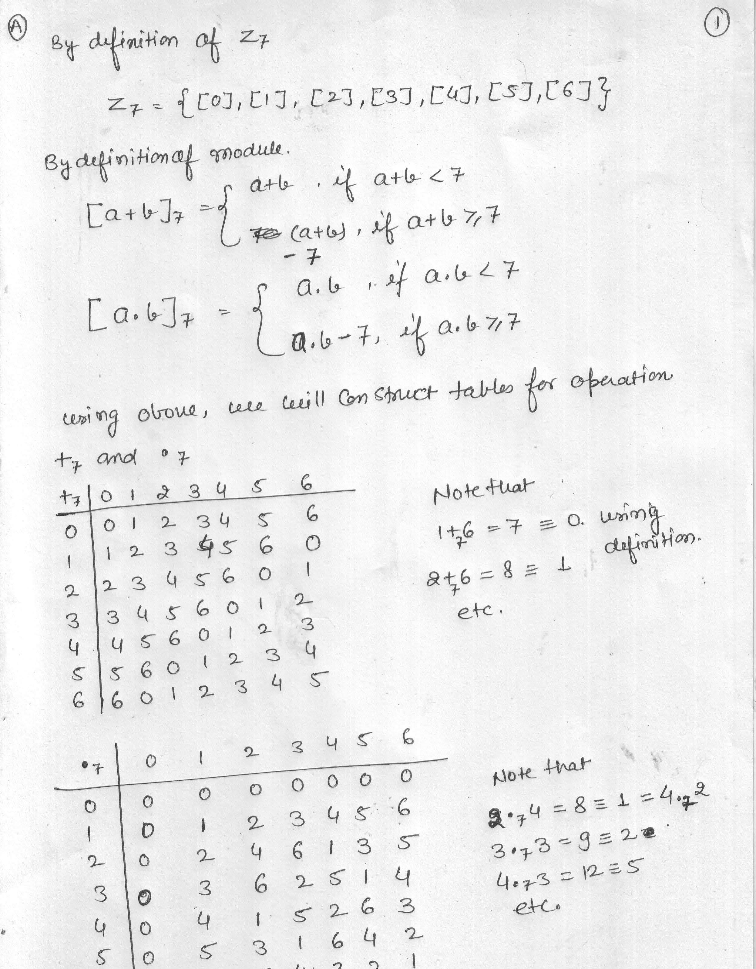 Task: A. Use the definition for a ring to prove that Z7 is a rin...