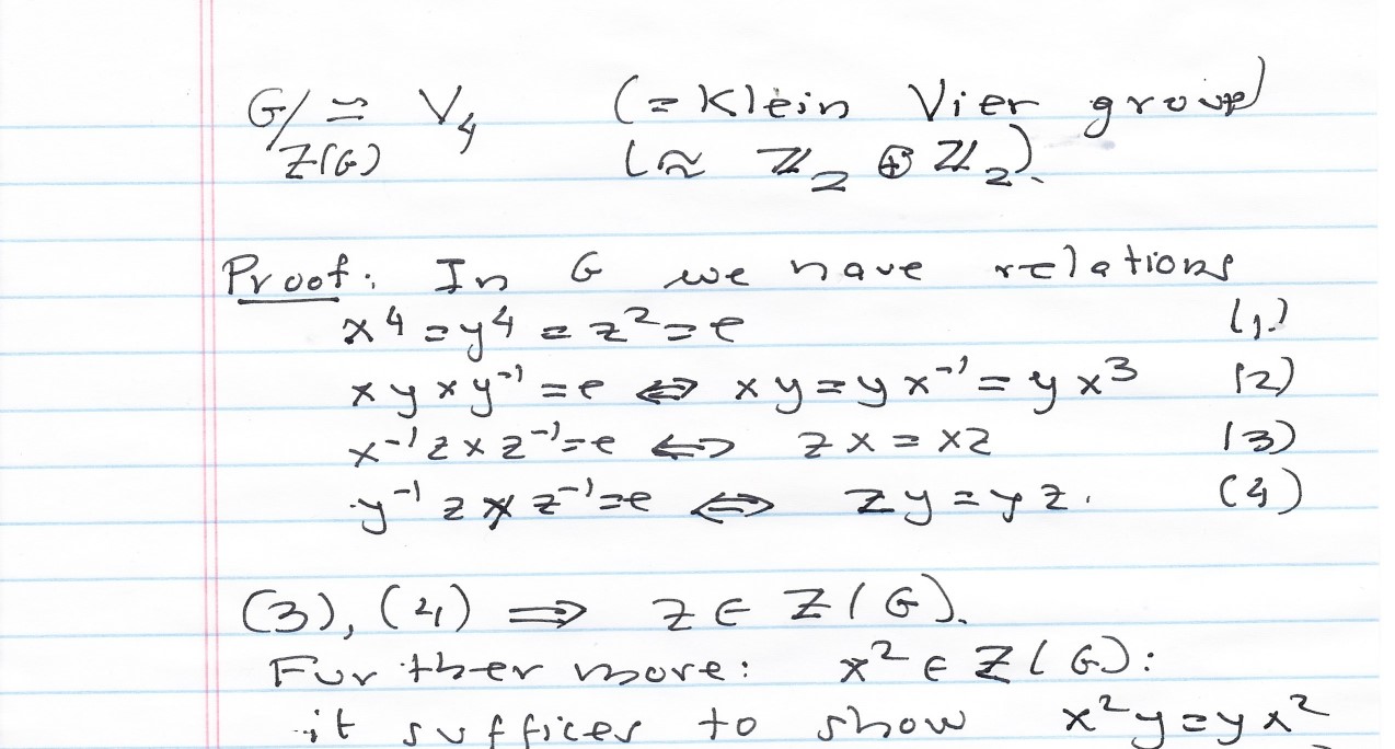 Let G = { x,y,z | x4 = y4 = z2 = e, x y x y-1 = e, x-1 z x z-1 = e,...