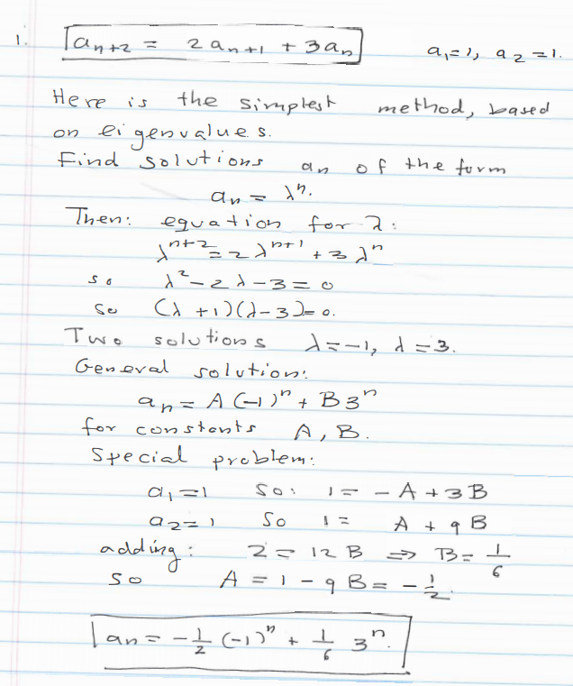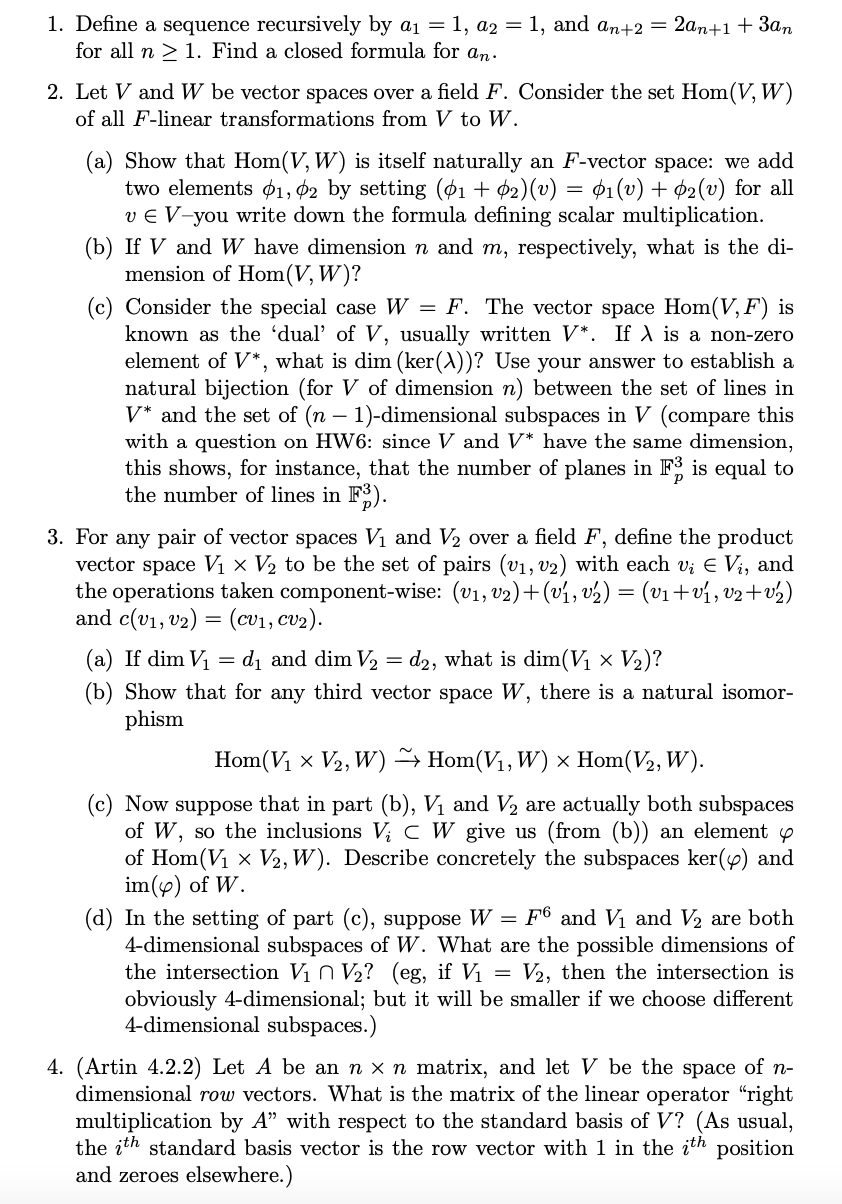 1. Define a sequence recursively by a1 = 1, a2 = 1, and an+2 = 2an+...