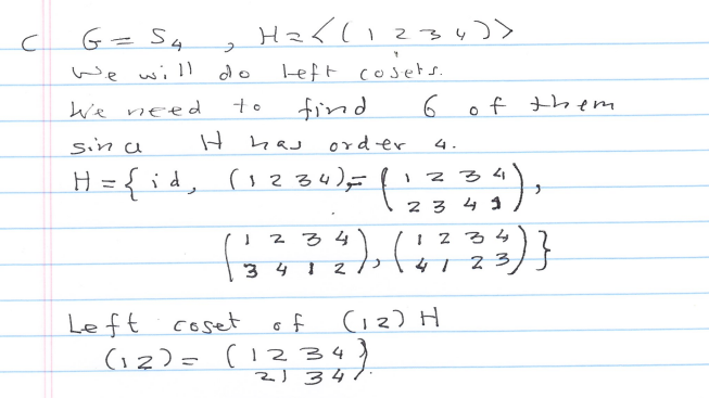 Let H ≤ G. Find all cosets for the given H and G. c) H =〈(1, 2...